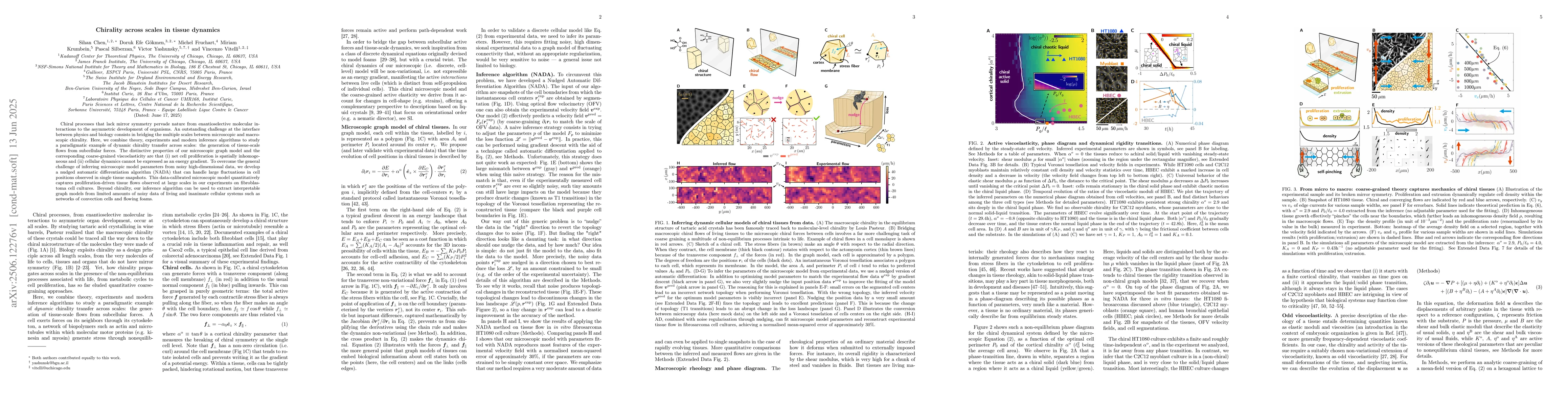 This research combines theory, experiments, and algorithms to study how microscopic cellular forces generate macroscopic tissue flows, demonstrating chirality across scales. A key method, NADA, infers microscopic model parameters from noisy data, successfully capturing proliferation-driven tissue flows in fibroblastoma cell cultures. This approach also holds potential for analyzing other cellular systems.