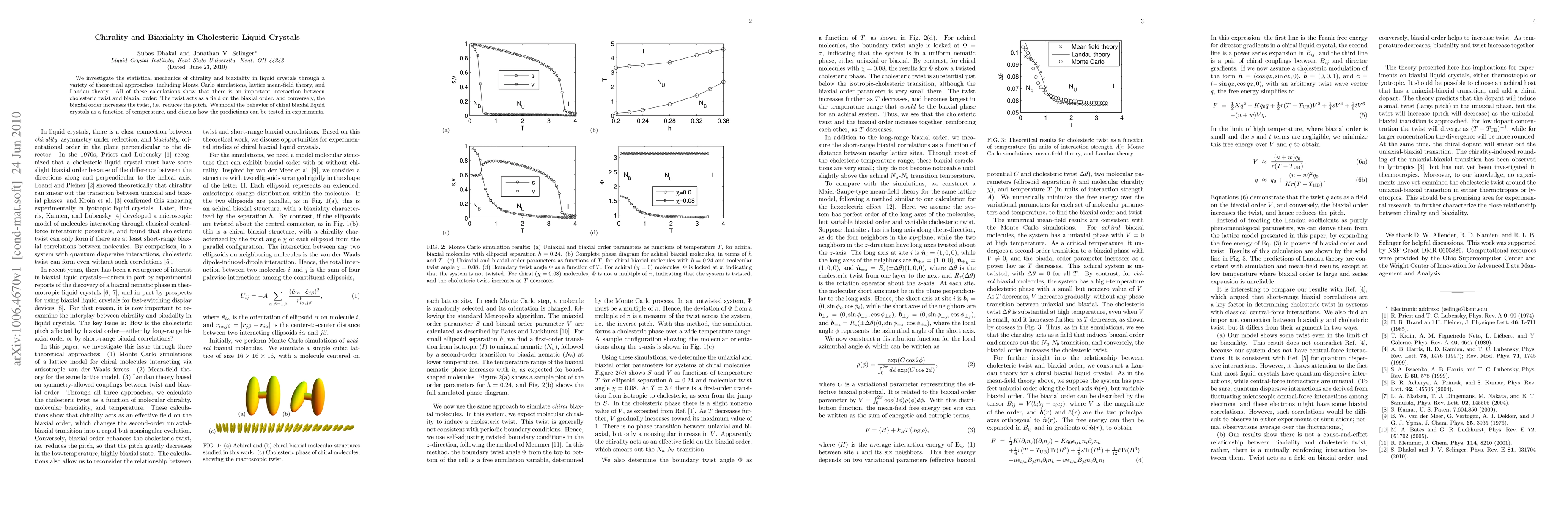 This paper explores the interplay between chirality and biaxiality in cholesteric liquid crystals using theoretical methods, revealing that cholesteric twist influences biaxial order and vice versa, reducing the pitch. Experimental validation of these theoretical predictions is proposed.
