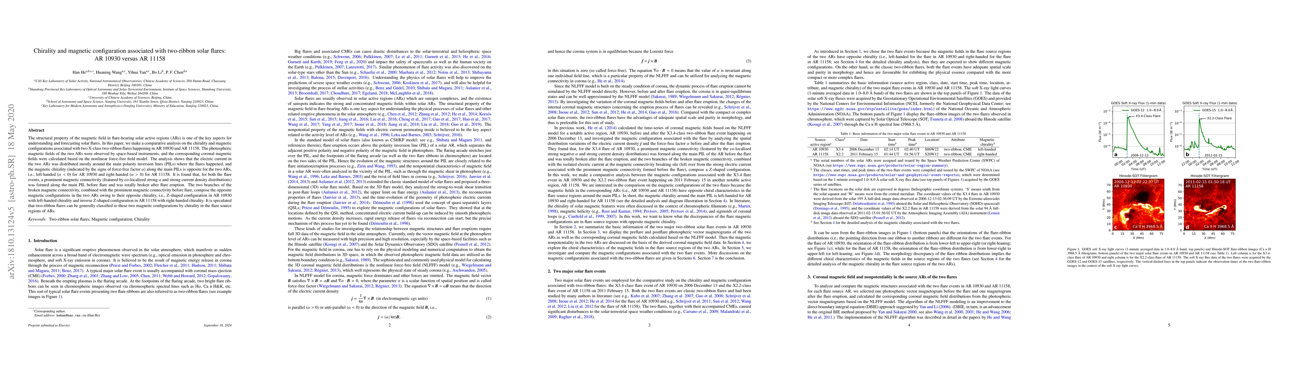 The structural property of the magnetic field in flare-bearing solar active regions (ARs) is one of the key aspects for understanding and forecasting solar flares. In this paper, we make a comparative analysis on the chirality and magnetic configurations associated with two X-class two-ribbon flares happening in AR 10930 and AR 11158. The photospheric magnetic fields of the two ARs were observed by space-based instruments, and the corresponding coronal magnetic fields were calculated based on the nonlinear force-free field model. The analysis shows that the electric current in the two ARs was distributed mostly around the main polarity inversion lines (PILs) where the flares happened, and the magnetic chirality (indicated by the signs of force-free factor $\alpha$) along the main PILs is opposite for the two ARs, i.e., left-handed ($\alpha<0$) for AR 10930 and right-handed ($\alpha>0$) for AR 11158. It is found that, for both the flare events, a prominent magnetic connectivity (featured by co-localized strong $\alpha$ and strong current density distributions) was formed along the main PIL before flare and was totally broken after flare eruption. The two branches of the broken magnetic connectivity, combined with the prominent magnetic connectivity before flare, compose the opposite magnetic configurations in the two ARs owing to their opposite chirality, i.e., Z-shaped configuration in AR 10930 with left-handed chirality and inverse Z-shaped configuration in AR 11158 with right-handed chirality. It is speculated that two-ribbon flares can be generally classified to these two magnetic configurations by chirality in the flare source regions of ARs.