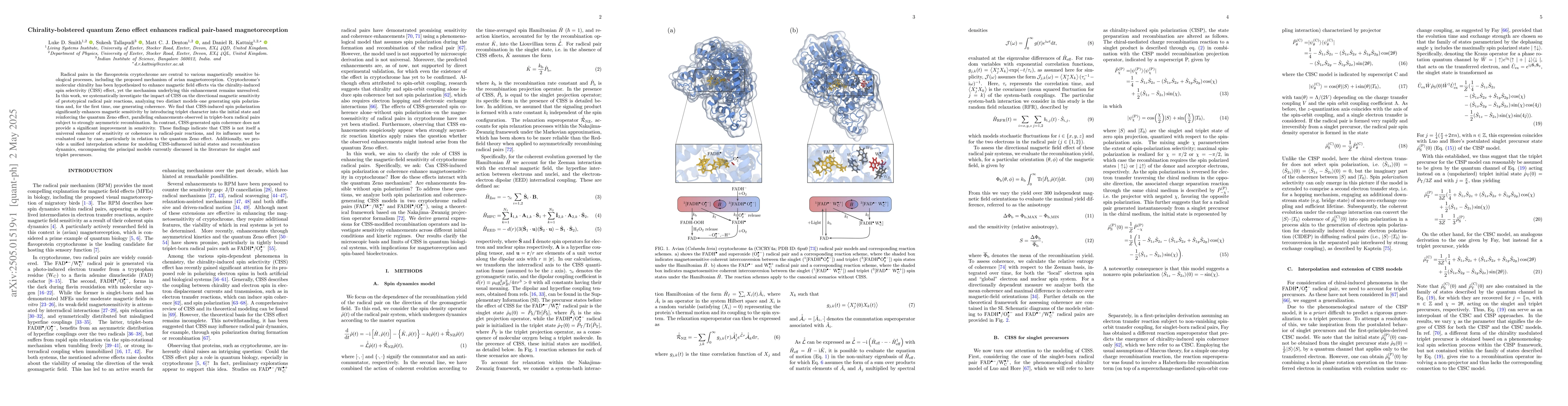 This study contributes to understanding the proposed mechanism of avian magnetoreception by clarifying the role of CISS in radical pair-based magnetoreception, which could impact biological and quantum physics fields.