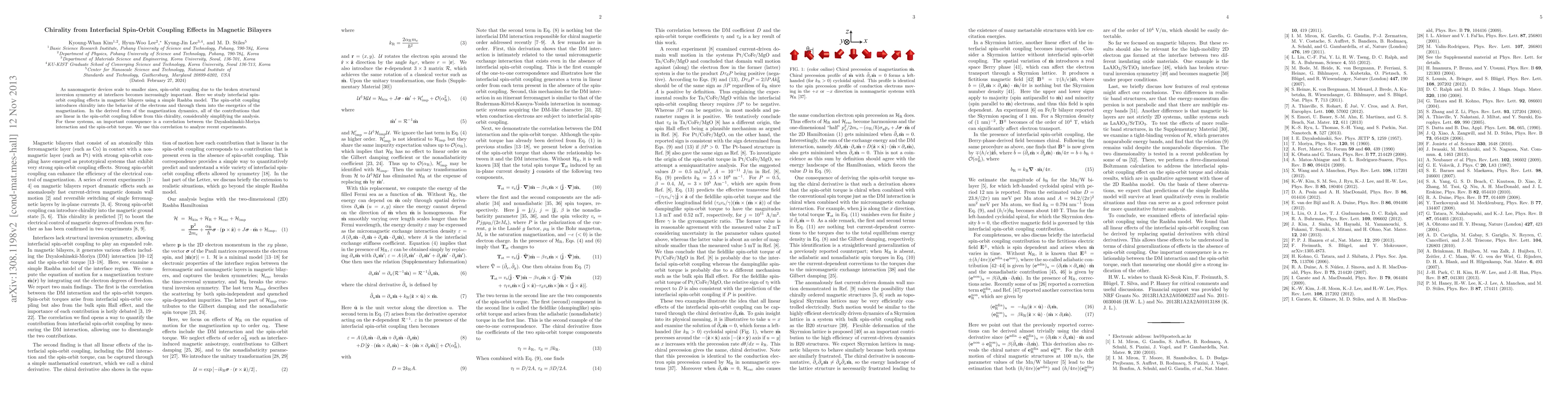 As nanomagnetic devices scale to smaller sizes, spin-orbit coupling due to the broken structural inversion symmetry at interfaces becomes increasingly important. Here we study interfacial spin-orbit coupling effects in magnetic bilayers using a simple Rashba model. The spin-orbit coupling introduces chirality into the behavior of the electrons and through them into the energetics of the magnetization. In the derived form of the magnetization dynamics, all of the contributions that are linear in the spin-orbit coupling follow from this chirality, considerably simplifying the analysis. For these systems, an important consequence is a correlation between the Dzyaloshinskii-Moriya interaction and the spin-orbit torque. We use this correlation to analyze recent experiments.