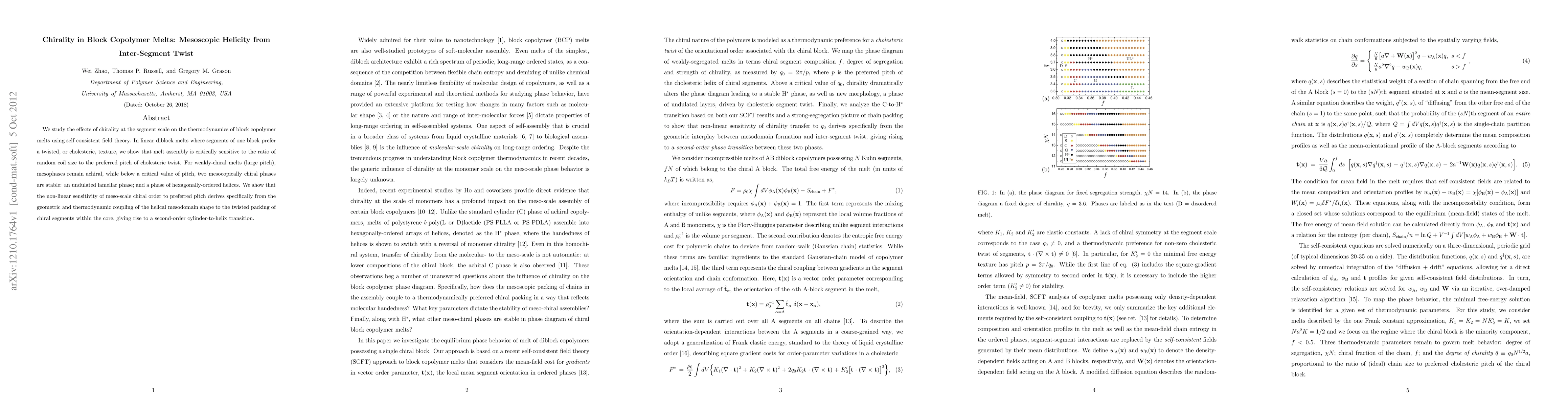 The development of a novel theoretical framework to describe the phase behavior of chiral block copolymer melts, which incorporates both molecular dynamics and density functional theory.