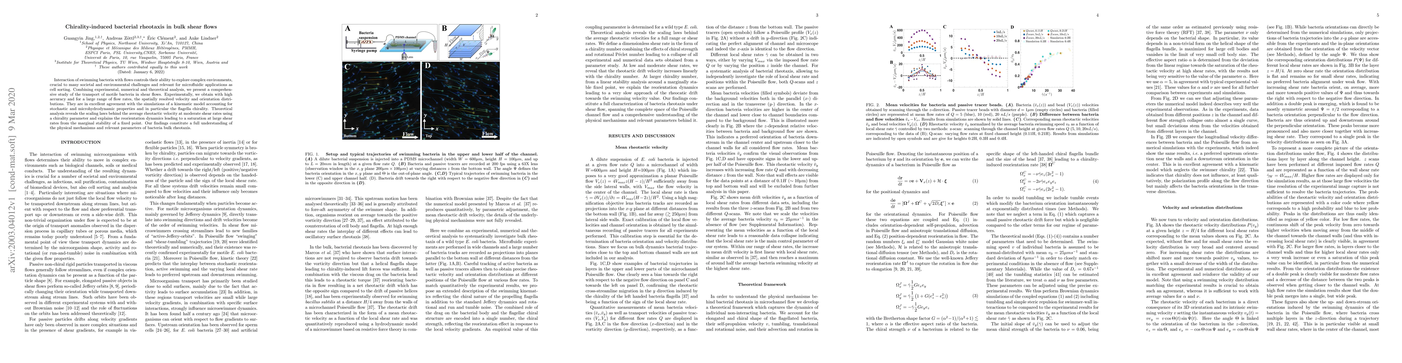 Researchers studied how swimming bacteria move in response to flowing water, discovering that their movements are influenced by a key property called chirality, which affects their speed and direction. The study provides new insights into the physical mechanisms behind bacterial movement and its potential applications in fields like microfluidics.