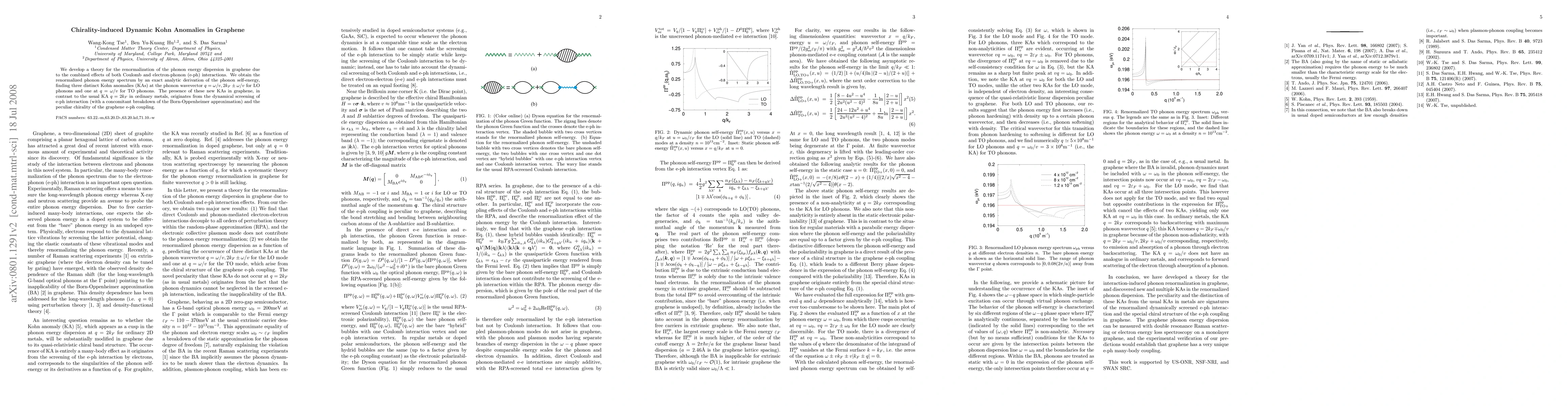 This paper develops a theoretical framework to understand the renormalization of phonon energy dispersion in graphene, revealing three distinct dynamic Kohn anomalies caused by Coulomb and electron-phonon interactions, with the anomalies originating from graphene's chirality and dynamical screening effects.
