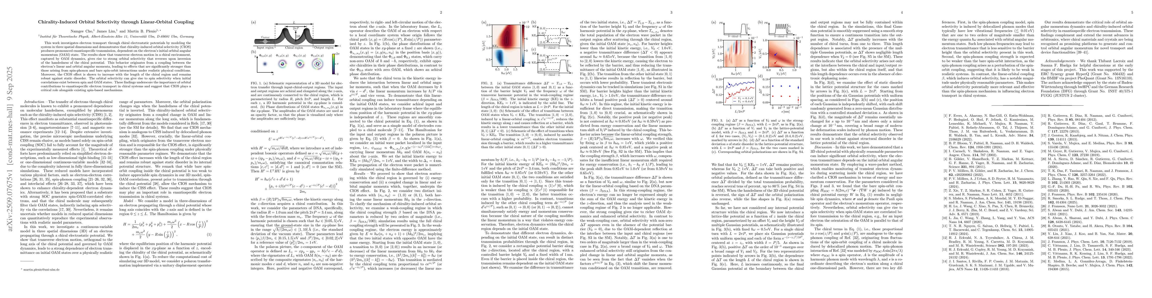 This work investigates electron transport through chiral electrostatic potentials by modeling the system in three spatial dimensions and demonstrates that chirality-induced orbital selectivity (CIOS) produces pronounced enantiospecific transmission, dependent on the electron's initial orbital angular momentum (OAM) state. The results show that transverse electron motion in a chiral environment, captured by OAM dynamics, gives rise to strong orbital selectivity that reverses upon inversion of the handedness of the chiral potential. This behavior originates from a coupling between the electron's linear and orbital angular momenta, leading to effects that are significantly stronger than those arising from spin-phonon and bare spin-orbit interactions under realistic physical conditions. Moreover, the CIOS effect is shown to increase with the length of the chiral region and remains robust against static disorder. The orbital selectivity can give rise to spin selectivity when initial correlations exist between spin and OAM states. These findings underscore the importance of orbital contributions to enantiospecific electron transport in chiral systems and suggest that CIOS plays a critical role alongside existing spin-based mechanisms.