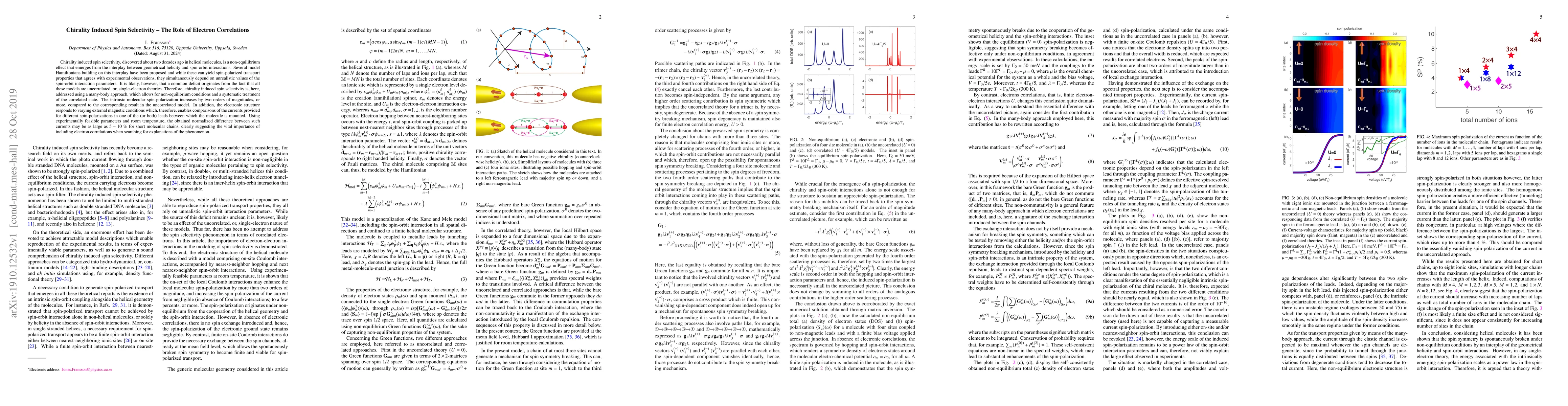 This paper investigates chirality induced spin selectivity using a many-body approach, revealing that electron correlations significantly enhance intrinsic molecular spin-polarization by two orders of magnitude compared to single-electron models. The study shows that including electron correlations is crucial for explaining the phenomenon, with potential for experimentally feasible differences in spin-polarized transport properties.