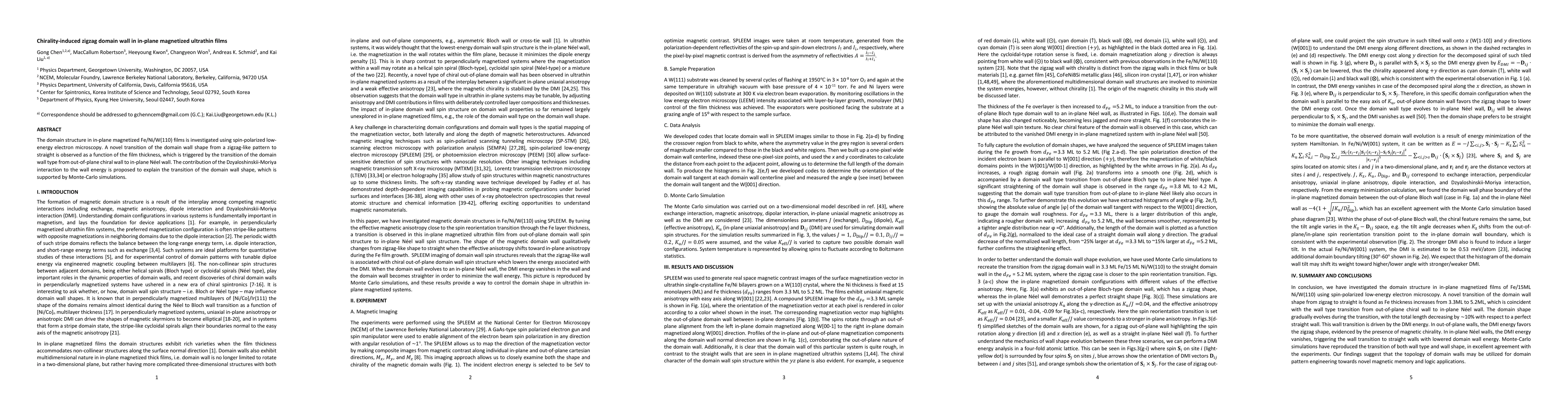 This study reveals a transition in zigzag domain wall shape to straight in in-plane magnetized Fe/Ni/W(110) films due to a change from chiral to Néel wall types, driven by the Dzyaloshinskii-Moriya interaction, as confirmed by spin-polarized microscopy and Monte-Carlo simulations.