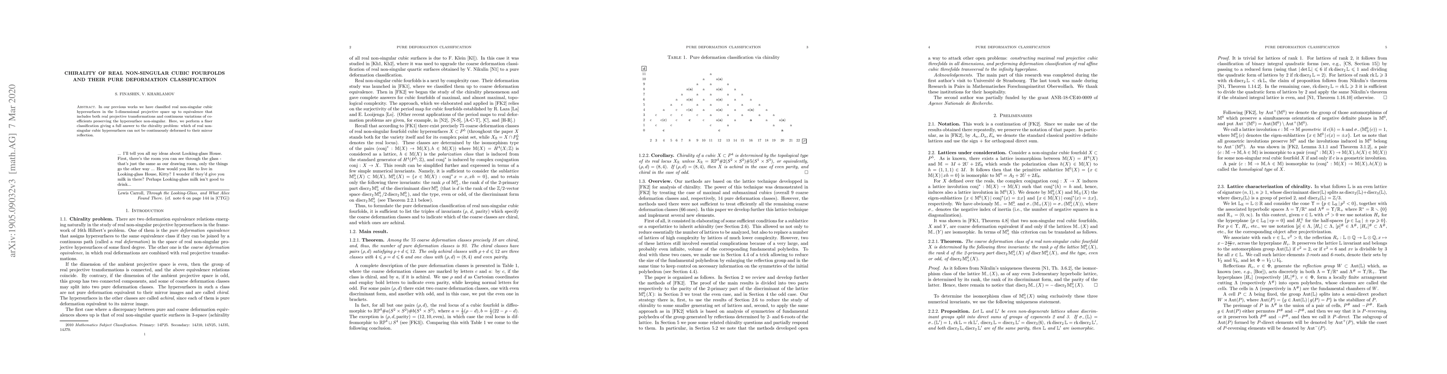 In our previous works we have classified real non-singular cubic hypersurfaces in the 5-dimensional projective space up to equivalence that includes both real projective transformations and continuous variations of coefficients preserving the hypersurface non-singular. Here, we perform a finer classification giving a full answer to the chirality problem: which of real non-singular cubic hypersurfaces can not be continuously deformed to their mirror reflection.