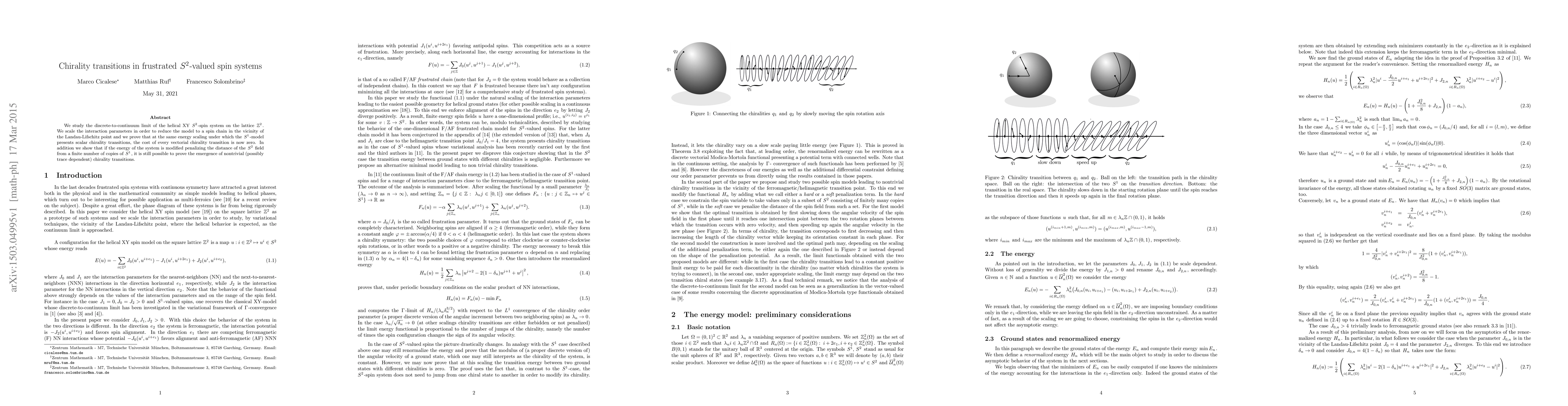This paper investigates chirality transitions in a helical XY $S^{2}$-spin system, demonstrating that vectorial chirality transitions become costless near the Landau-Lifschitz point. It also shows that penalizing deviations from $S^{1}$ fields can still lead to nontrivial chirality transitions.