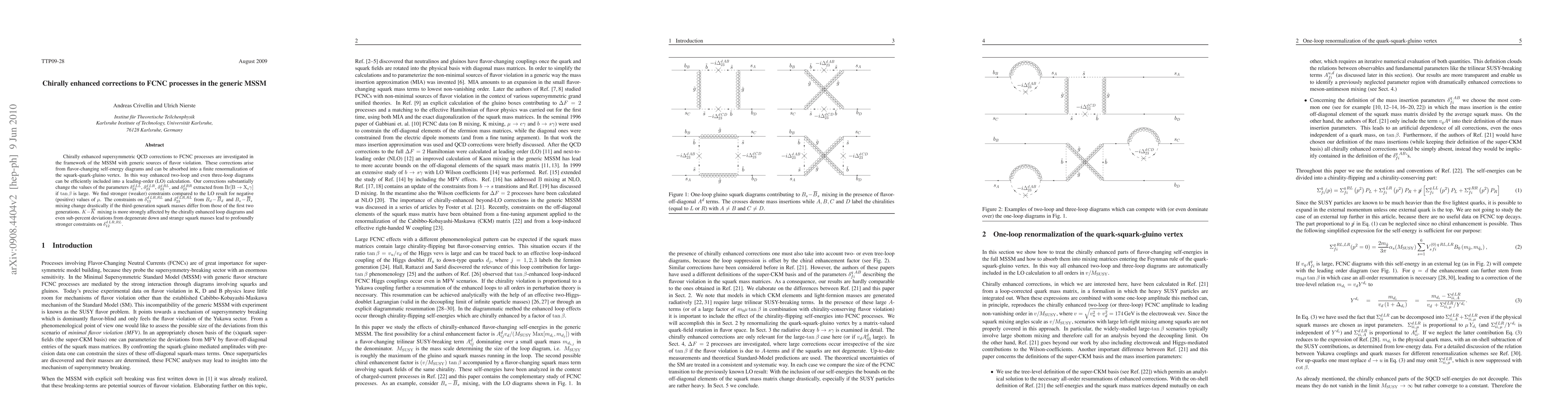 This study investigates supersymmetric QCD corrections to flavor-changing processes in the Minimal Supersymmetric Standard Model (MSSM), finding that large values of beta lead to stronger constraints on certain parameters when mu is positive or negative.
