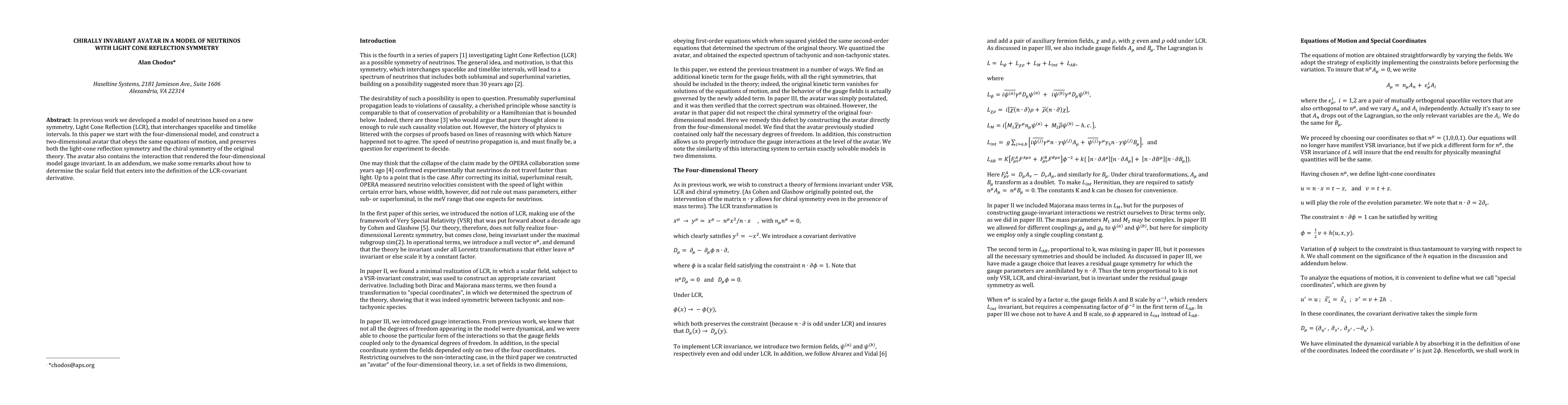 Researchers created a 2D avatar model of neutrinos with light cone reflection symmetry that preserves both light-cone reflection and chiral symmetries, and includes an interaction for gauge invariance.