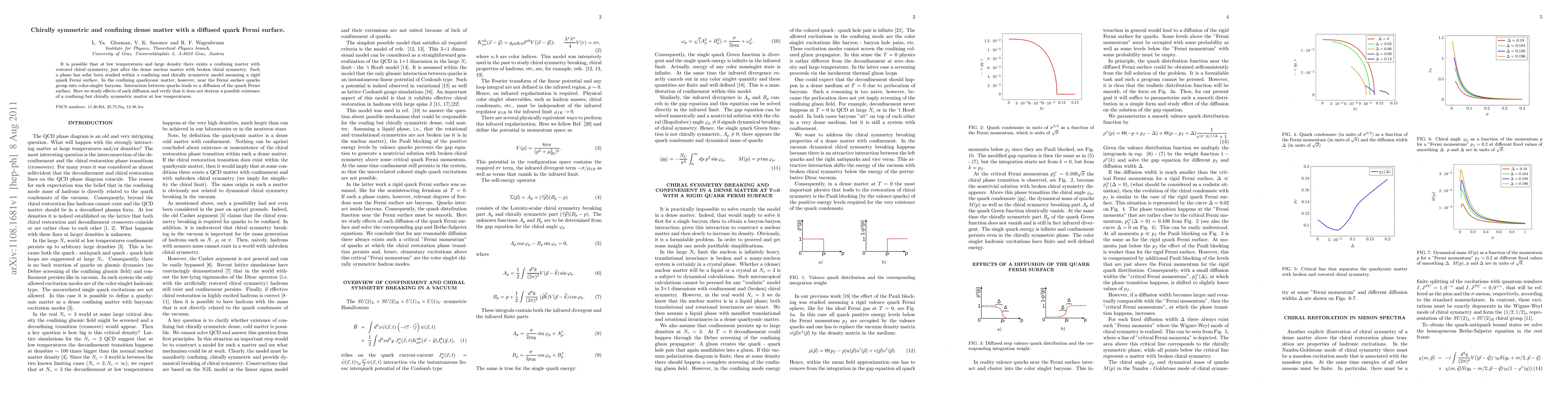 This paper investigates the existence of a confining phase of dense matter at low temperatures and high densities, where chiral symmetry is restored. It examines how the diffusion of the quark Fermi surface, caused by quark interactions, affects the stability of this phase, concluding that diffusion does not undermine the possibility of such a phase.