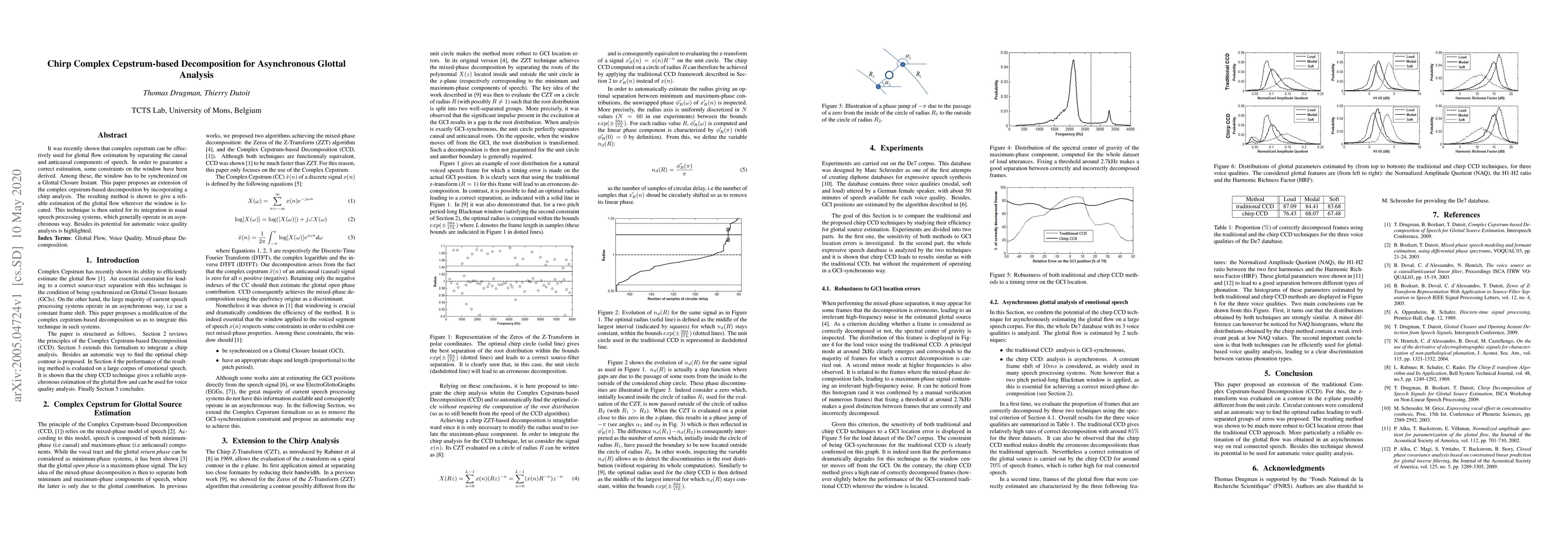 It was recently shown that complex cepstrum can be effectively used for glottal flow estimation by separating the causal and anticausal components of speech. In order to guarantee a correct estimation, some constraints on the window have been derived. Among these, the window has to be synchronized on a Glottal Closure Instant. This paper proposes an extension of the complex cepstrum-based decomposition by incorporating a chirp analysis. The resulting method is shown to give a reliable estimation of the glottal flow wherever the window is located. This technique is then suited for its integration in usual speech processing systems, which generally operate in an asynchronous way. Besides its potential for automatic voice quality analysis is highlighted.