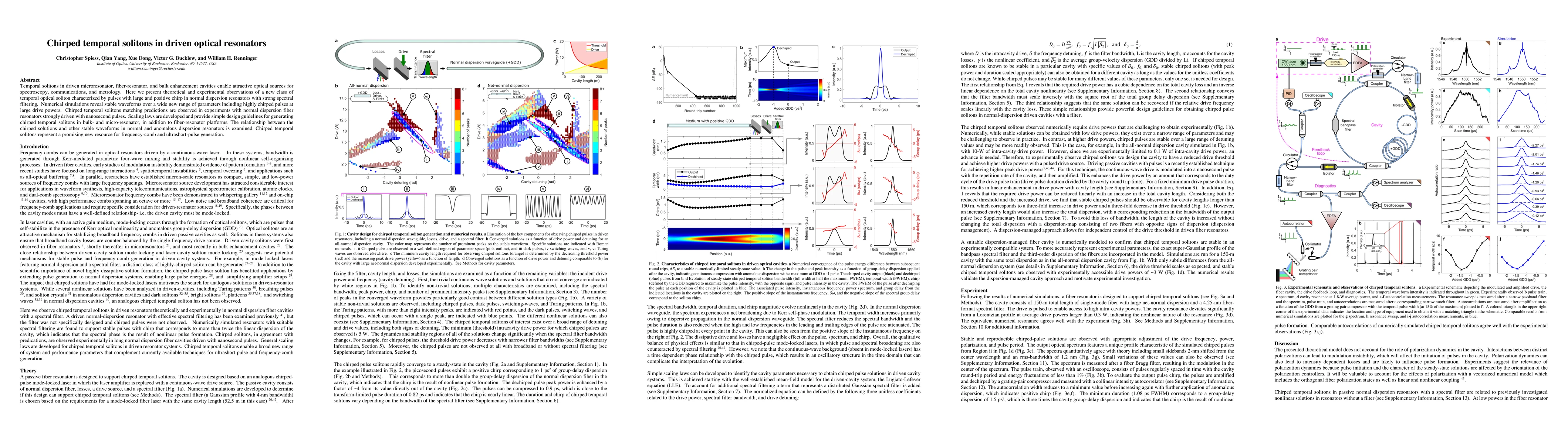 This paper investigates new chirped temporal solitons in driven optical resonators, showcasing their stable, highly chirped pulse waveforms under strong spectral filtering. Experimental and theoretical results confirm their potential for applications in spectroscopy, communications, and metrology, with design guidelines for their generation.