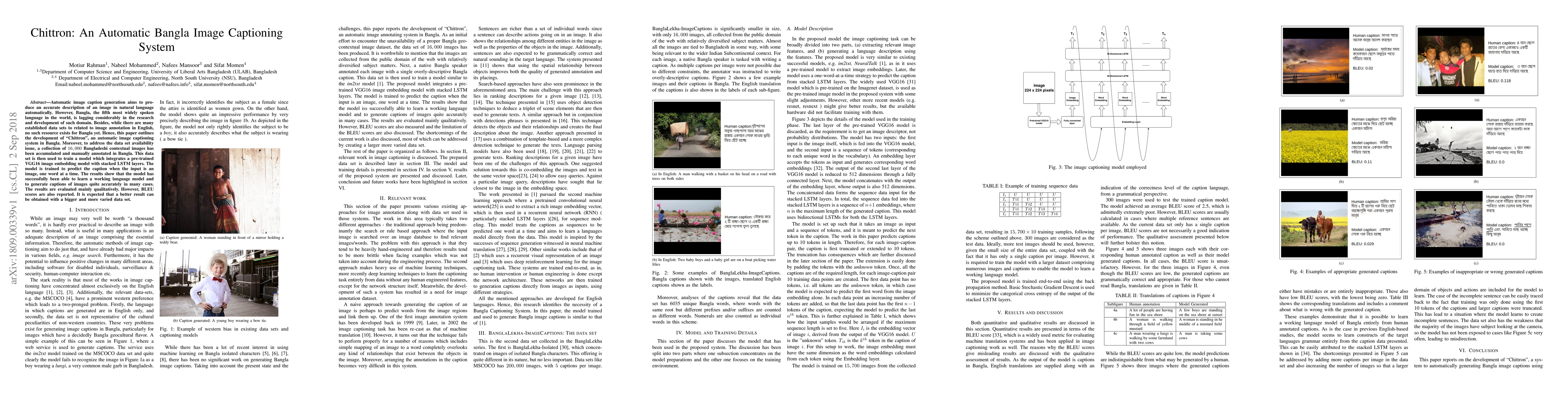 Automatic image caption generation aims to produce an accurate description of an image in natural language automatically. However, Bangla, the fifth most widely spoken language in the world, is lagging considerably in the research and development of such domain. Besides, while there are many established data sets to related to image annotation in English, no such resource exists for Bangla yet. Hence, this paper outlines the development of "Chittron", an automatic image captioning system in Bangla. Moreover, to address the data set availability issue, a collection of 16,000 Bangladeshi contextual images has been accumulated and manually annotated in Bangla. This data set is then used to train a model which integrates a pre-trained VGG16 image embedding model with stacked LSTM layers. The model is trained to predict the caption when the input is an image, one word at a time. The results show that the model has successfully been able to learn a working language model and to generate captions of images quite accurately in many cases. The results are evaluated mainly qualitatively. However, BLEU scores are also reported. It is expected that a better result can be obtained with a bigger and more varied data set.