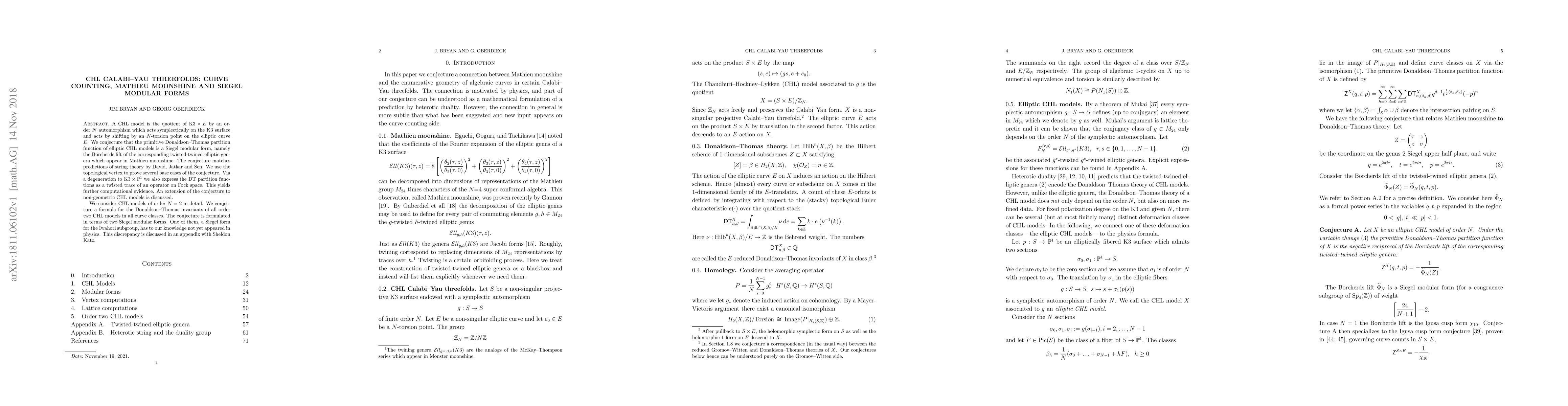 This paper explores CHL models, which are quotients of K3 surfaces and elliptic curves, and conjectures that their Donaldson-Thomas partition functions correspond to Siegel modular forms linked to Mathieu moonshine. The authors use the topological vertex to provide evidence for their conjecture and discuss its implications for string theory and non-geometric CHL models.