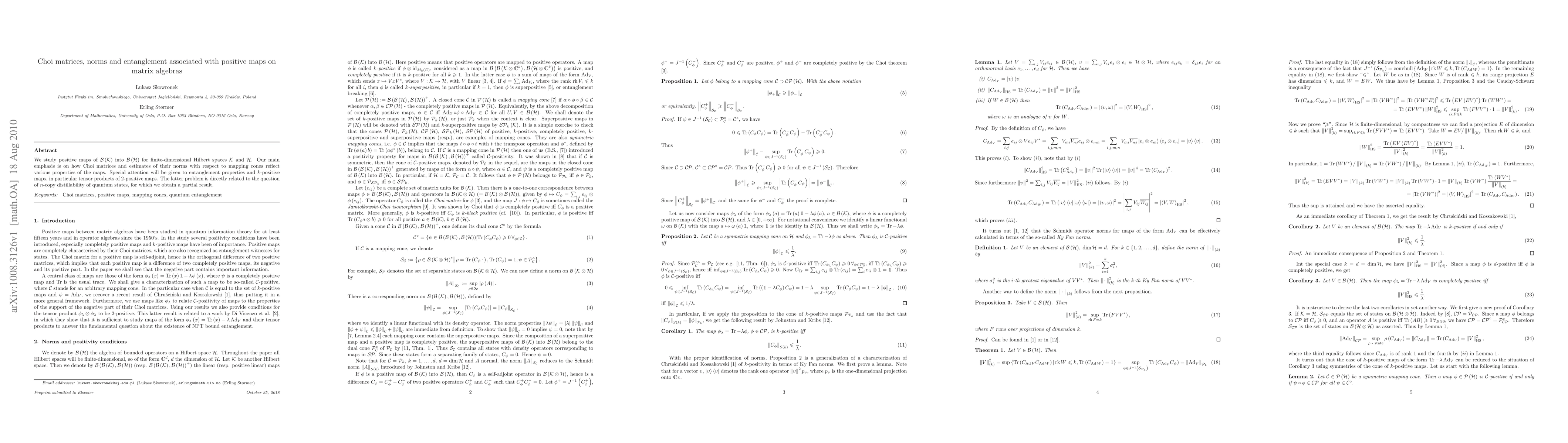The paper introduces new methods for analyzing positive maps using Choi matrices and their norms, providing insights into entanglement properties and k-positivity.