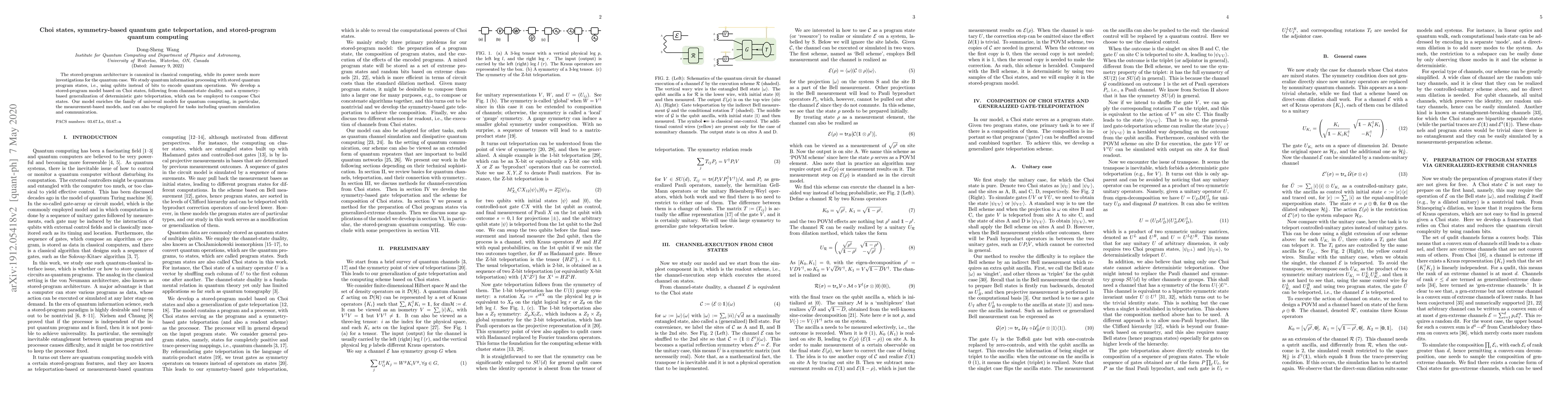 This paper proposes a stored-program model for quantum computing using qubits to encode quantum operations, based on Choi states and a symmetry-based generalization of gate teleportation. This model enhances universal quantum computing frameworks and supports applications like quantum simulation and communication.