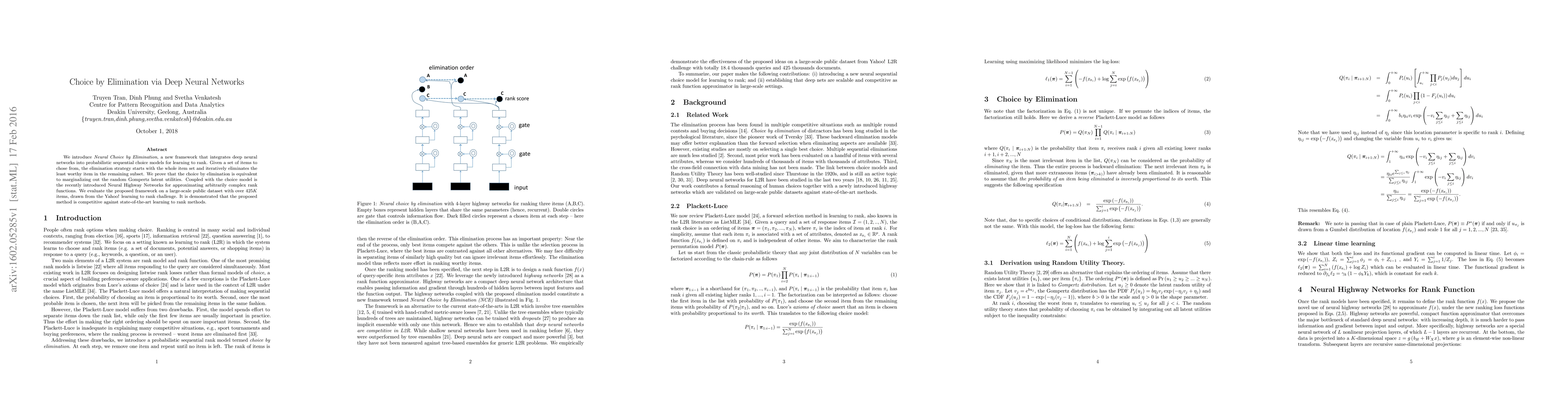A new framework called Neural Choice by Elimination uses deep neural networks to optimize item ranking by iteratively eliminating the least preferred option, outperforming state-of-the-art methods on a large-scale public dataset.