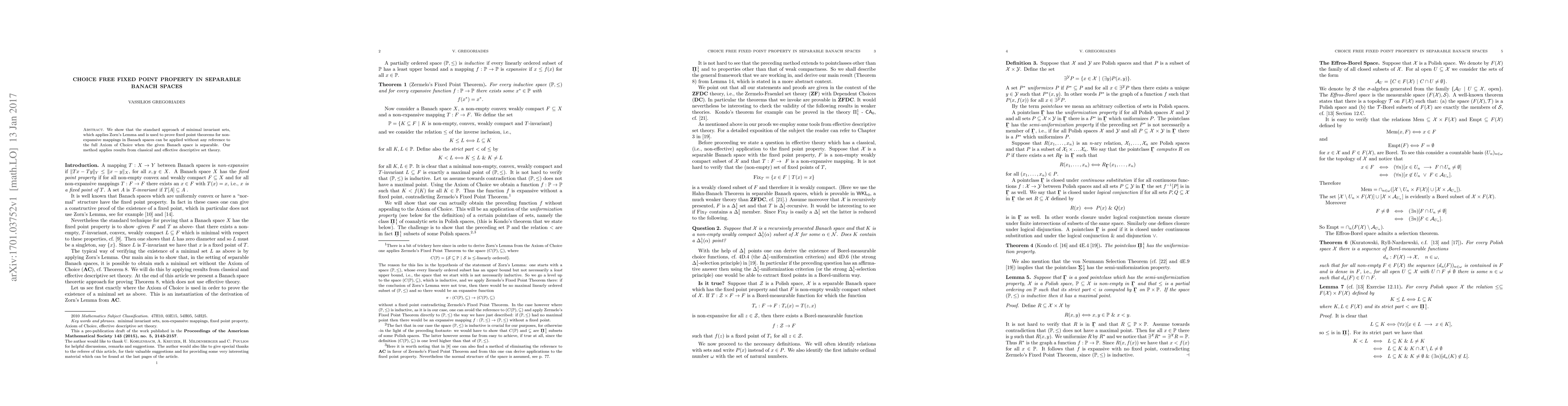 This paper proves that Zorn's Lemma can be applied without the Axiom of Choice in separable Banach spaces, enabling fixed point theorems for non-expansive mappings.