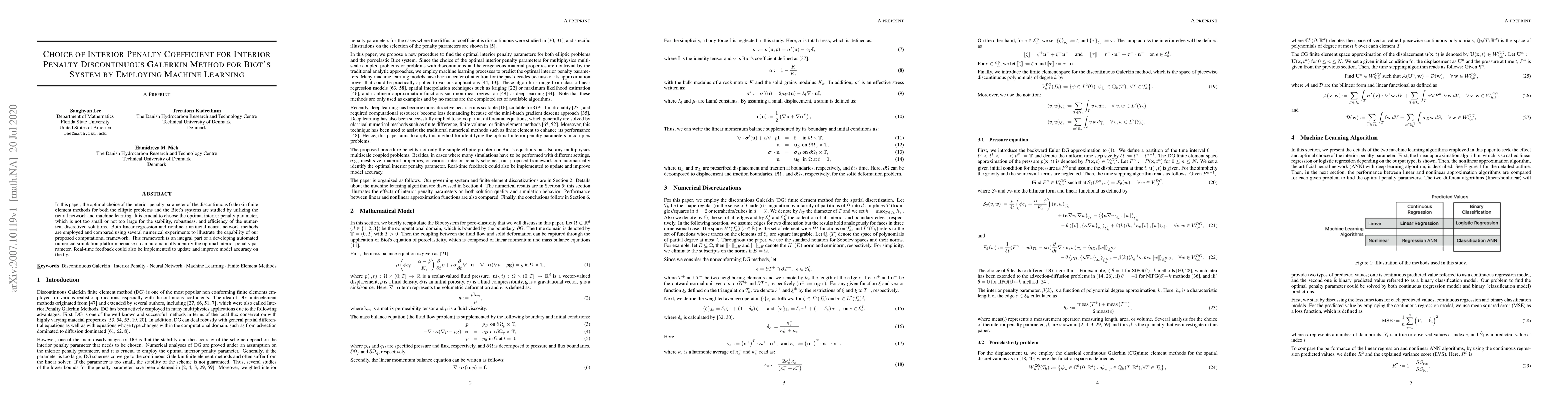 This paper investigates the optimal selection of the interior penalty coefficient for the discontinuous Galerkin method using machine learning techniques, specifically neural networks. The study employs both linear regression and artificial neural networks to determine the best penalty parameter for stability and efficiency in solving Biot's system, demonstrating the potential for real-time model updates.