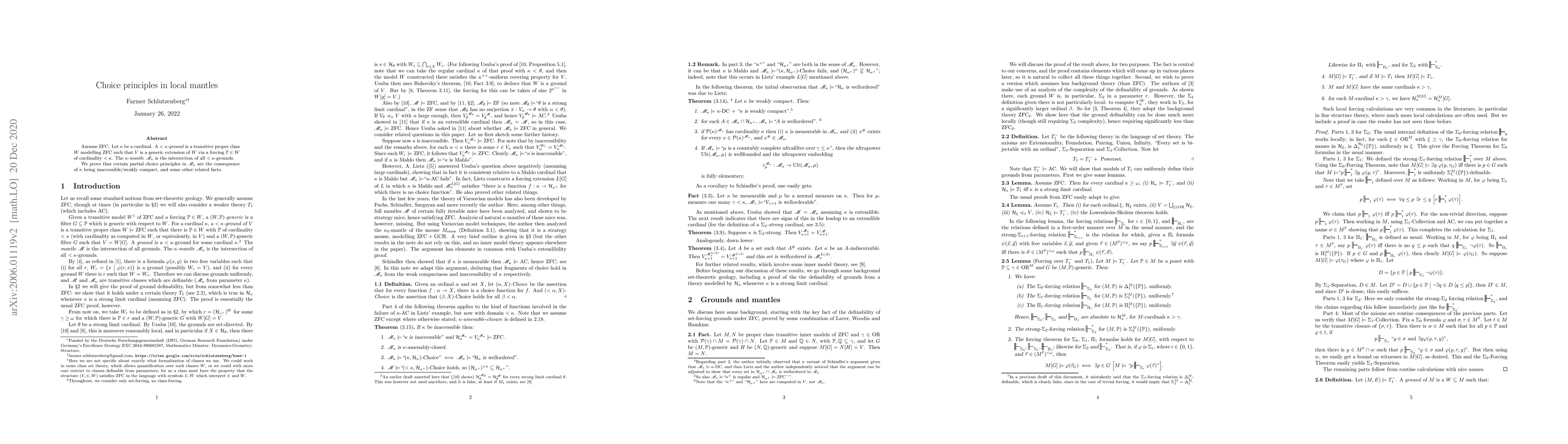 Assume ZFC. Let $\kappa$ be a cardinal. A ${<\kappa}$-ground is a transitive proper class $W$ modelling ZFC and such that $V$ is a generic extension of $W$ via a forcing $\mathbb{P}\in W$ of cardinality ${<\kappa}$. The $\kappa$-mantle is the intersection of all ${<\kappa}$-grounds. We prove that certain partial choice principles in the $\kappa$-mantle are the consequence of $\kappa$ being inaccessible/weakly compact, and some other related facts.