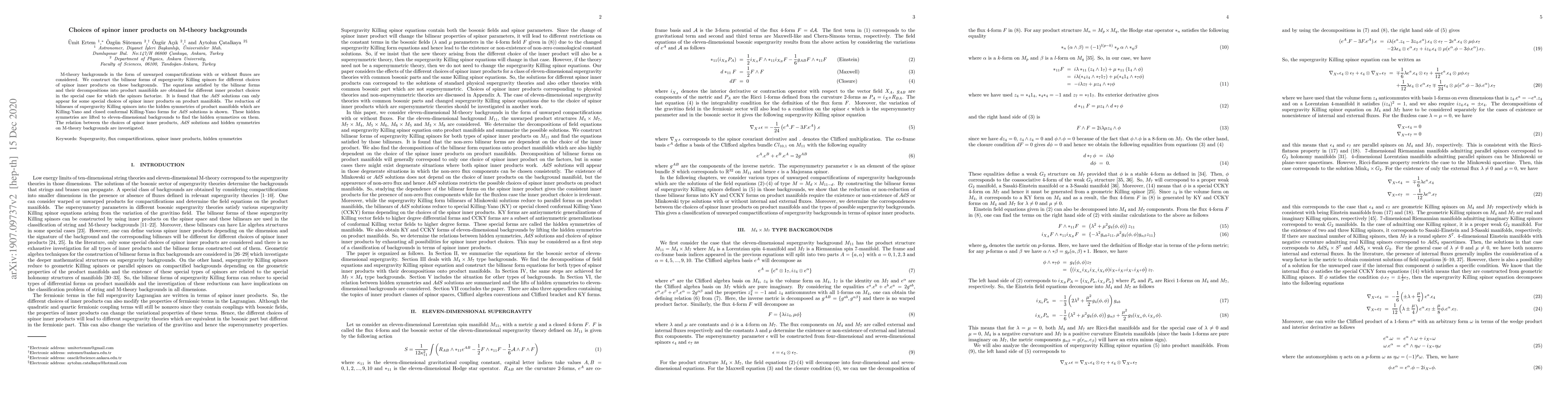 M-theory backgrounds in the form of unwarped compactifications with or without fluxes are considered. We construct the bilinear forms of supergravity Killing spinors for different choices of spinor inner products on these backgrounds. The equations satisfied by the bilinear forms and their decompositions into product manifolds are obtained for different inner product choices in the special case for which the spinors factorize. It is found that the $AdS$ solutions can only appear for some special choices of spinor inner products on product manifolds. The reduction of bilinears of supergravity Killing spinors into the hidden symmetries of product manifolds which are Killing-Yano and closed conformal Killing-Yano forms for $AdS$ solutions is shown. These hidden symmetries are lifted to eleven-dimensional backgrounds to find the hidden symmetires on them. The relation between the choices of spinor inner products, $AdS$ solutions and hidden symmetries on M-theory backgrounds are investigated.