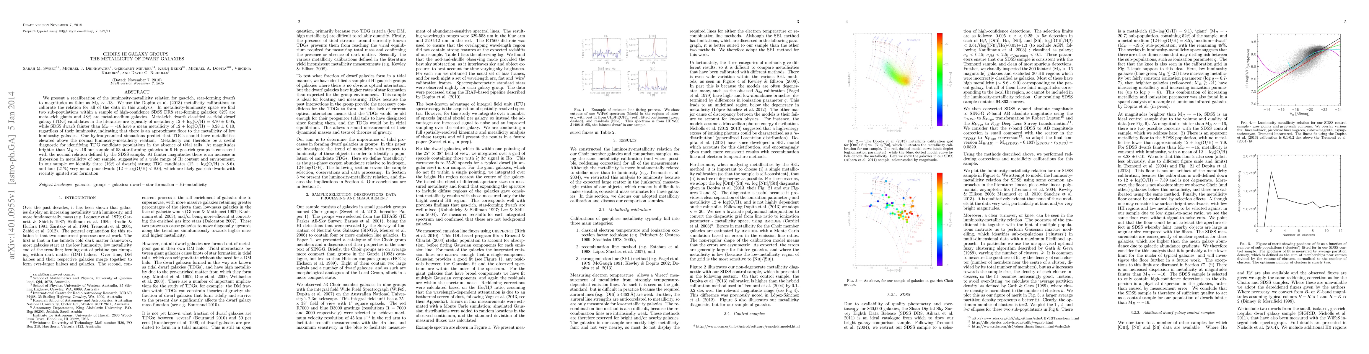 We present a recalibration of the luminosity-metallicity relation for gas-rich, star-forming dwarfs to magnitudes as faint as M$_R$ ~ -13. We use the Dopita et al. (2013) metallicity calibrations to calibrate the relation for all of the data in this analysis. In metallicity-luminosity space we find two sub-populations within a sample of high-confidence SDSS DR8 star-forming galaxies; 52% are metal-rich giants and 48% are metal-medium galaxies. Metal-rich dwarfs classified as tidal dwarf galaxy (TDG) candidates in the literature are typically of metallicity 12 + log(O/H) = 8.70 $\pm$ 0.05, while SDSS dwarfs fainter than M$_R$ = -16 have a mean metallicity of 12 + log(O/H) = 8.28 $\pm$ 0.10, regardless of their luminosity, indicating that there is an approximate floor to the metallicity of low luminosity galaxies. Our hydrodynamical simulations predict that TDGs should have metallicities elevated above the normal luminosity-metallicity relation. Metallicity can therefore be a useful diagnostic for identifying TDG candidate populations in the absence of tidal tails. At magnitudes brighter than M$_R$ ~ -16 our sample of 53 star-forming galaxies in 9 HI gas-rich groups is consistent with the normal relation defined by the SDSS sample. At fainter magnitudes there is an increase in dispersion in metallicity of our sample, suggestive of a wide range of HI content and environment. In our sample we identify three (16% of dwarfs) strong TDG candidates (12 + log(O/H) > 8.6), and four (21%) very metal poor dwarfs (12 + log(O/H) < 8.0), which are likely gas-rich dwarfs with recently ignited star formation.
