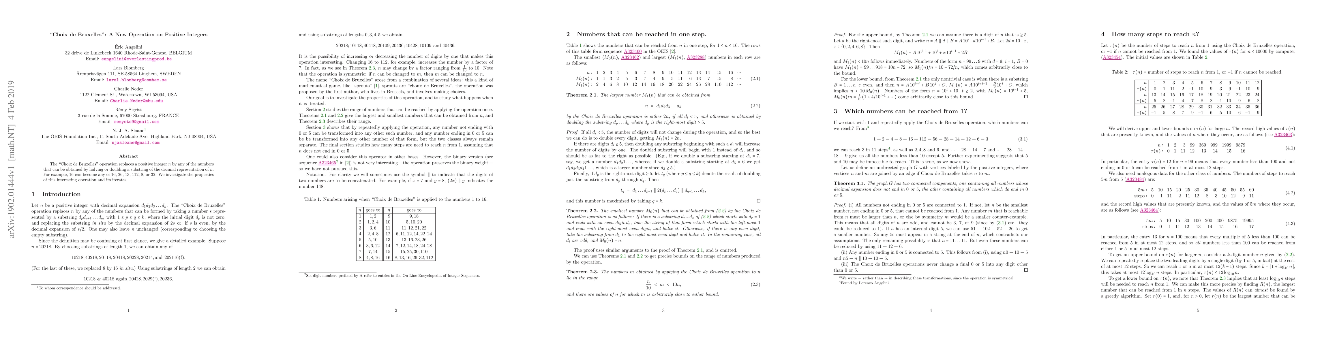 The "Choix de Bruxelles" operation replaces a positive integer n by any of the numbers that can be obtained by halving or doubling a substring of the decimal representation of n. For example, 16 can become any of 16, 26, 13, 112, 8, or 32. We investigate the properties of this interesting operation and its iterates.