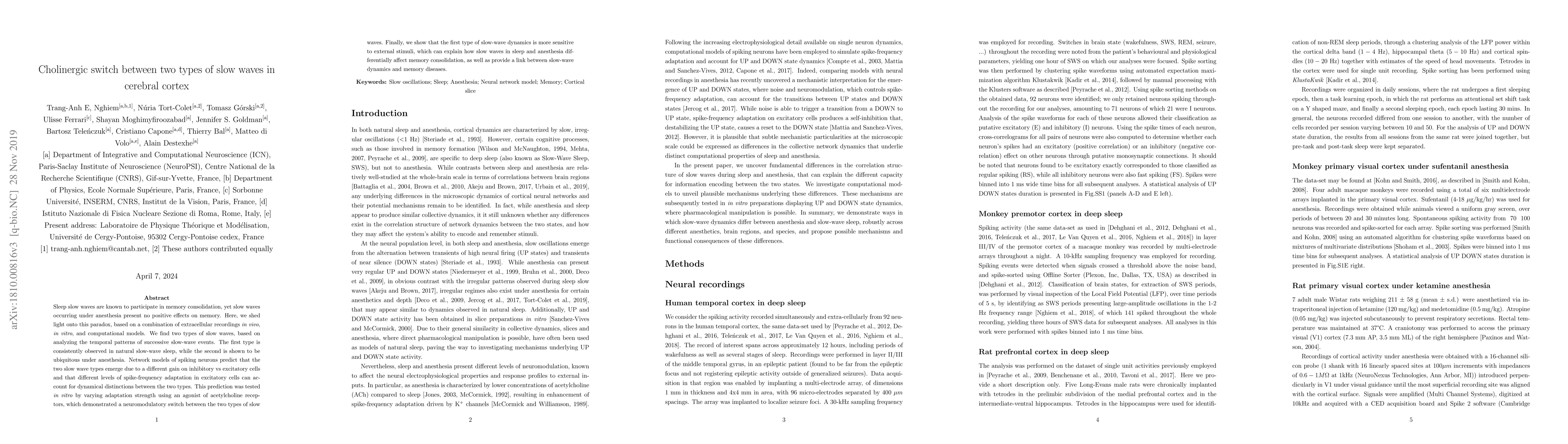 This paper investigates two distinct types of slow waves in the cerebral cortex, revealing a cholinergic switch between them. The study combines in vivo and in vitro recordings and computational models to show that the first type, observed in natural sleep, supports memory consolidation, while the second type, prevalent under anesthesia, does not.