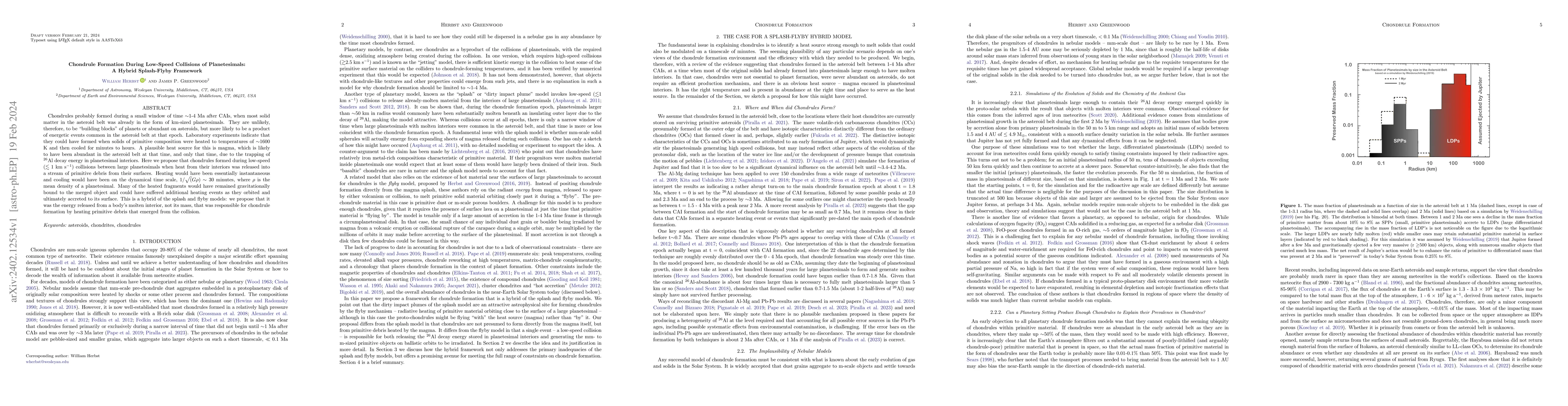 The research proposes a hybrid splash-flyby framework for chondrule formation during low-speed collisions of planetesimals, utilizing a magma heat source.