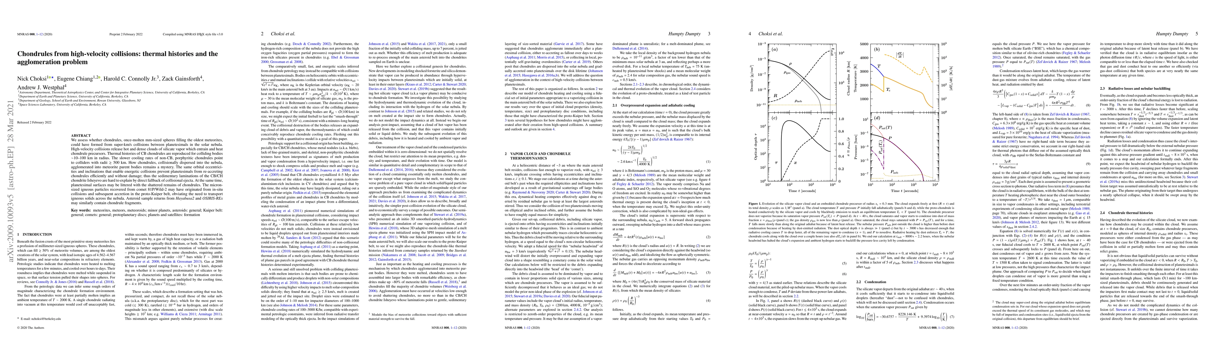 This paper investigates the formation of chondrules through high-velocity collisions in the solar nebula, showing the thermal histories of CB chondrules match those from km-sized colliding bodies. It also highlights the challenge of chondrules agglomerating into meteorite parent bodies due to the same orbital dynamics that cause energetic collisions.