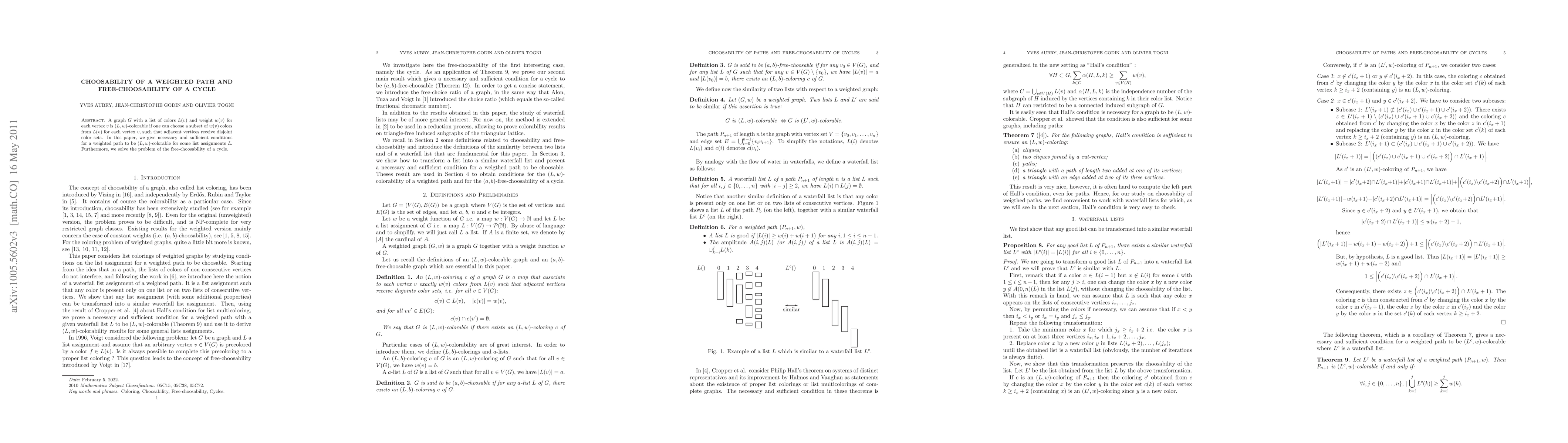 A graph $G$ with a list of colors $L(v)$ and weight $w(v)$ for each vertex $v$ is $(L,w)$-colorable if one can choose a subset of $w(v)$ colors from $L(v)$ for each vertex $v$, such that adjacent vertices receive disjoint color sets. In this paper, we give necessary and sufficient conditions for a weighted path to be $(L,w)$-colorable for some list assignments $L$. Furthermore, we solve the problem of the free-choosability of a cycle.
