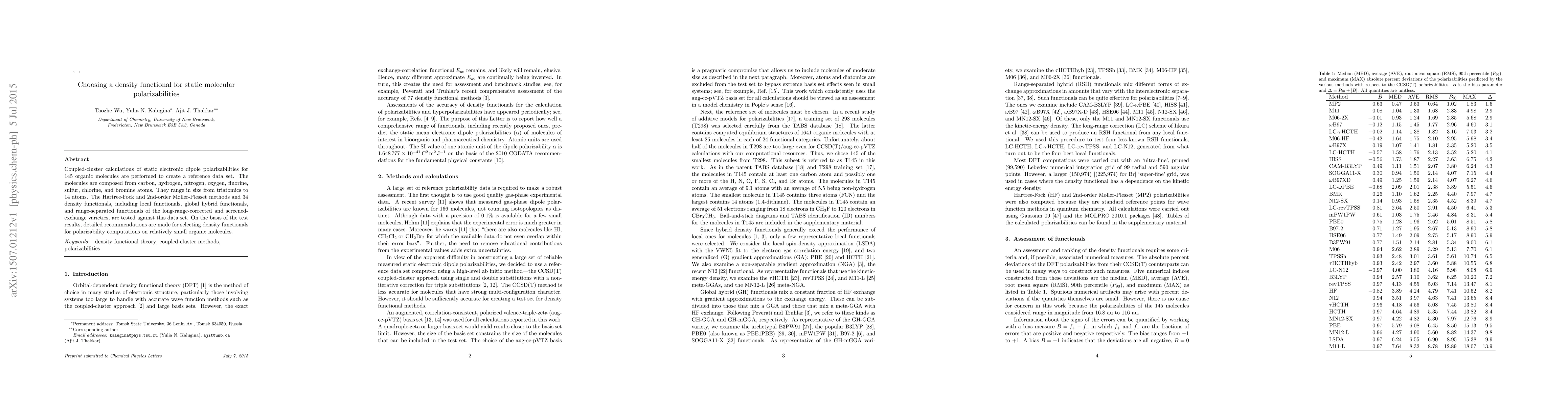 This paper evaluates the performance of various density functionals against coupled-cluster calculations for static dipole polarizabilities in 145 organic molecules. The study recommends specific density functionals for accurate polarizability computations in small organic molecules based on the tested methods.