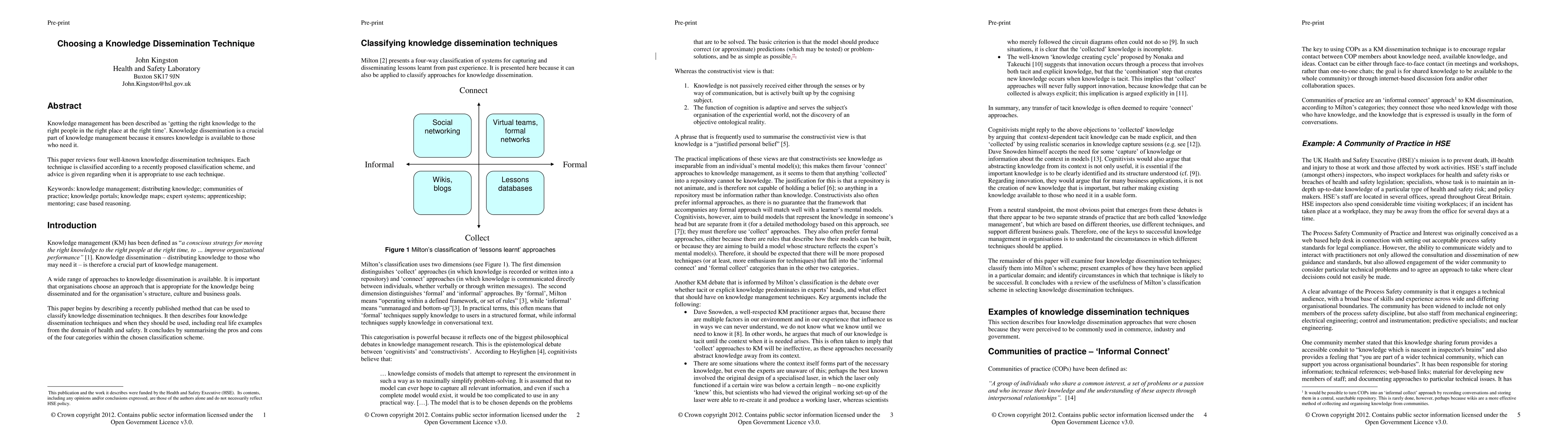 The paper reviews four knowledge dissemination techniques, providing advice on when to use each approach, helping organizations get the right knowledge to the right people at the right time.