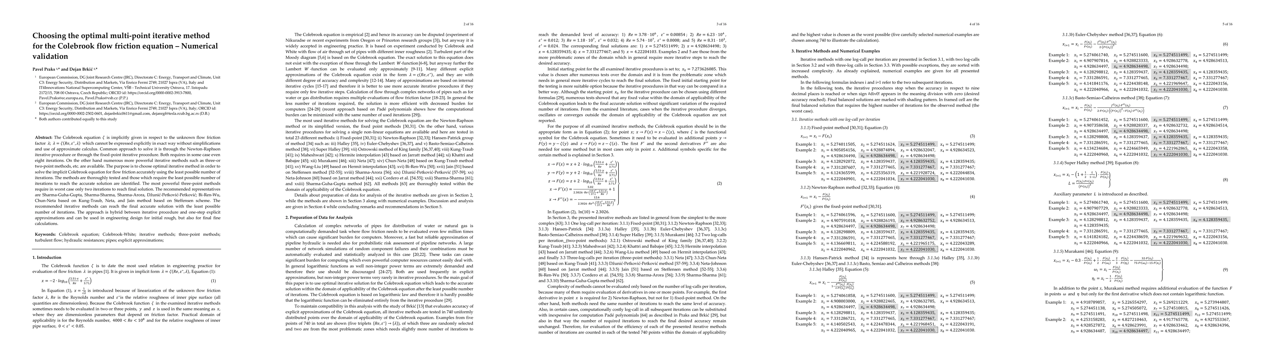 Researchers identified three optimal iterative methods for solving the implicit Colebrook equation for flow friction: Sharma-Guha-Gupta, Sharma-Sharma, and Sharma-Arora, which can reach accurate solutions in just two iterations.