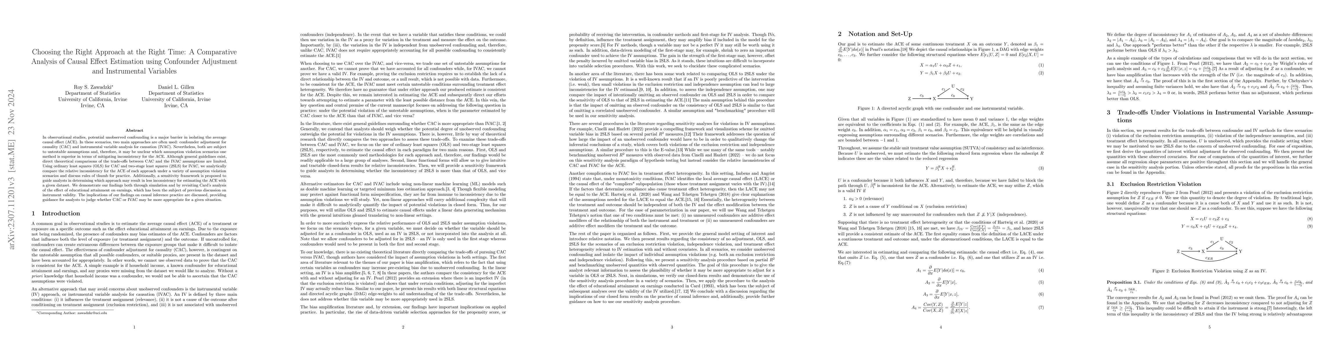 In observational studies, unobserved confounding is a major barrier in isolating the average causal effect (ACE). In these scenarios, two main approaches are often used: confounder adjustment for causality (CAC) and instrumental variable analysis for causation (IVAC). Nevertheless, both are subject to untestable assumptions and, therefore, it may be unclear which assumption violation scenarios one method is superior in terms of mitigating inconsistency for the ACE. Although general guidelines exist, direct theoretical comparisons of the trade-offs between CAC and the IVAC assumptions are limited. Using ordinary least squares (OLS) for CAC and two-stage least squares (2SLS) for IVAC, we analytically compare the relative inconsistency for the ACE of each approach under a variety of assumption violation scenarios and discuss rules of thumb for practice. Additionally, a sensitivity framework is proposed to guide analysts in determining which approach may result in less inconsistency for estimating the ACE with a given dataset. We demonstrate our findings both through simulation and an application examining whether maternal stress during pregnancy affects a neonate's birthweight. The implications of our findings for causal inference practice are discussed, providing guidance for analysts for judging whether CAC or IVAC may be more appropriate for a given situation.