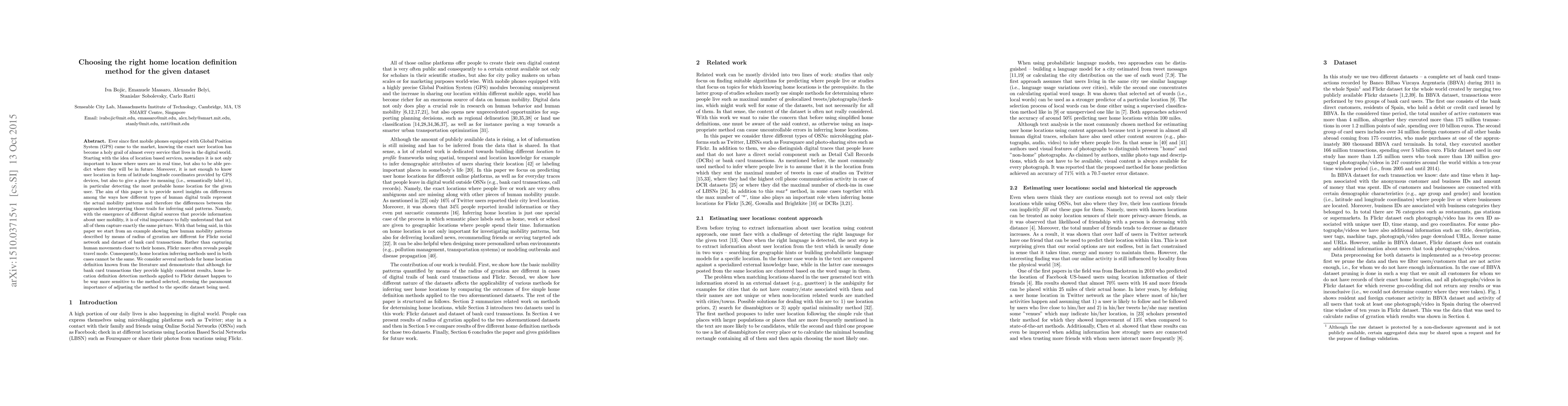 Ever since first mobile phones equipped with GPS came to the market, knowing the exact user location has become a holy grail of almost every service that lives in the digital world. Starting with the idea of location based services, nowadays it is not only important to know where users are in real time, but also to be able predict where they will be in future. Moreover, it is not enough to know user location in form of latitude longitude coordinates provided by GPS devices, but also to give a place its meaning (i.e., semantically label it), in particular detecting the most probable home location for the given user. The aim of this paper is to provide novel insights on differences among the ways how different types of human digital trails represent the actual mobility patterns and therefore the differences between the approaches interpreting those trails for inferring said patterns. Namely, with the emergence of different digital sources that provide information about user mobility, it is of vital importance to fully understand that not all of them capture exactly the same picture. With that being said, in this paper we start from an example showing how human mobility patterns described by means of radius of gyration are different for Flickr social network and dataset of bank card transactions. Rather than capturing human movements closer to their homes, Flickr more often reveals people travel mode. Consequently, home location inferring methods used in both cases cannot be the same. We consider several methods for home location definition known from the literature and demonstrate that although for bank card transactions they provide highly consistent results, home location definition detection methods applied to Flickr dataset happen to be way more sensitive to the method selected, stressing the paramount importance of adjusting the method to the specific dataset being used.