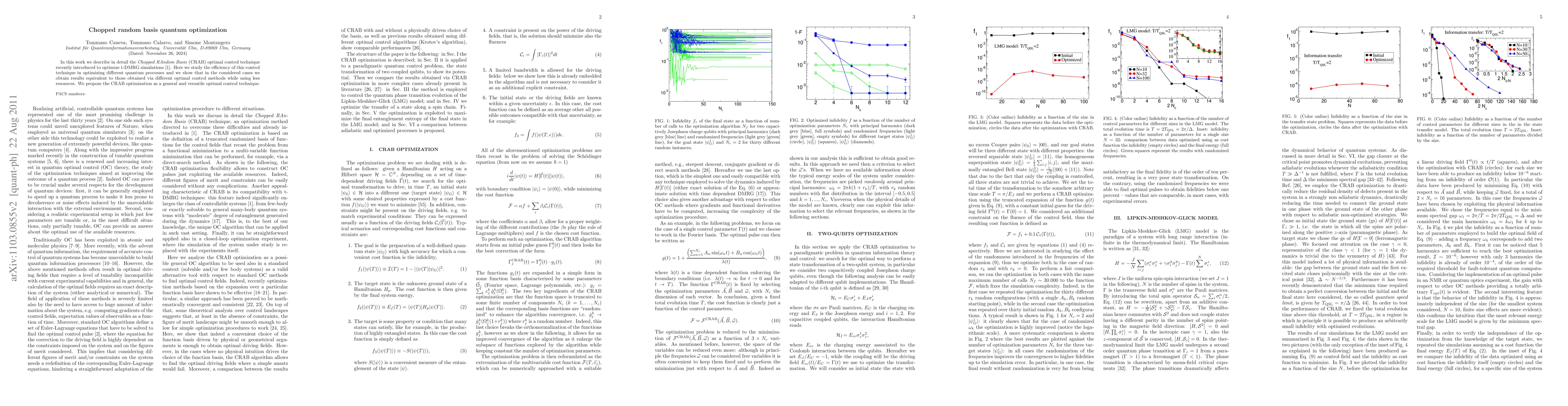 The "Chopped Random Basis" (CRAB) optimal control technique optimizes t-DMRG simulations efficiently, achieving results comparable to other methods while using fewer resources, suggesting its versatility for various quantum processes.