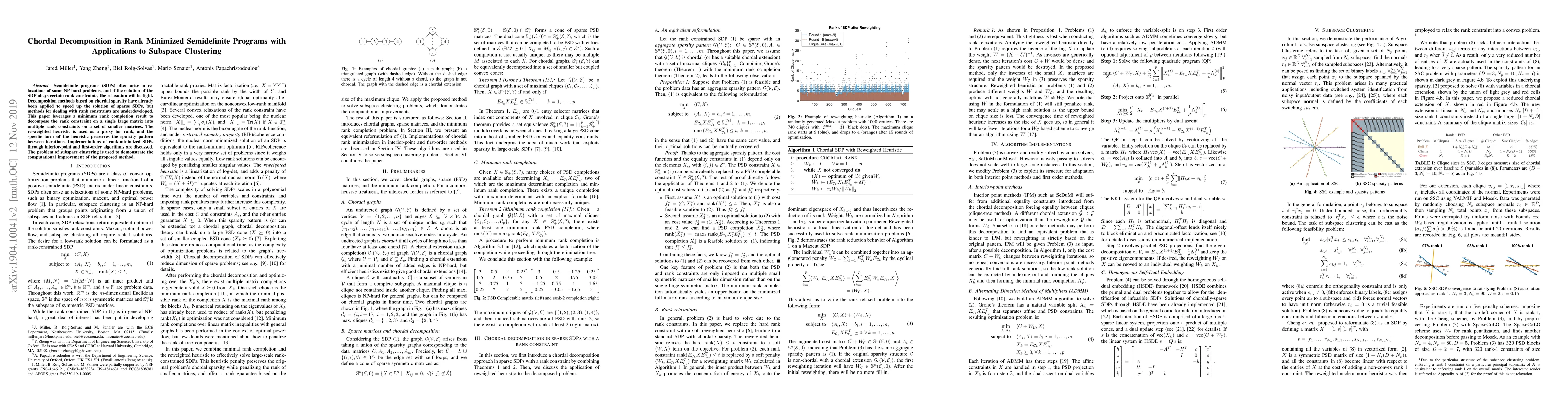 This paper proposes a method to decompose rank constraints in semidefinite programs for subspace clustering, leveraging a minimum rank completion result to break down large matrices into smaller matrices with rank constraints. It discusses implementations using interior-point and first-order algorithms, demonstrating computational improvements.
