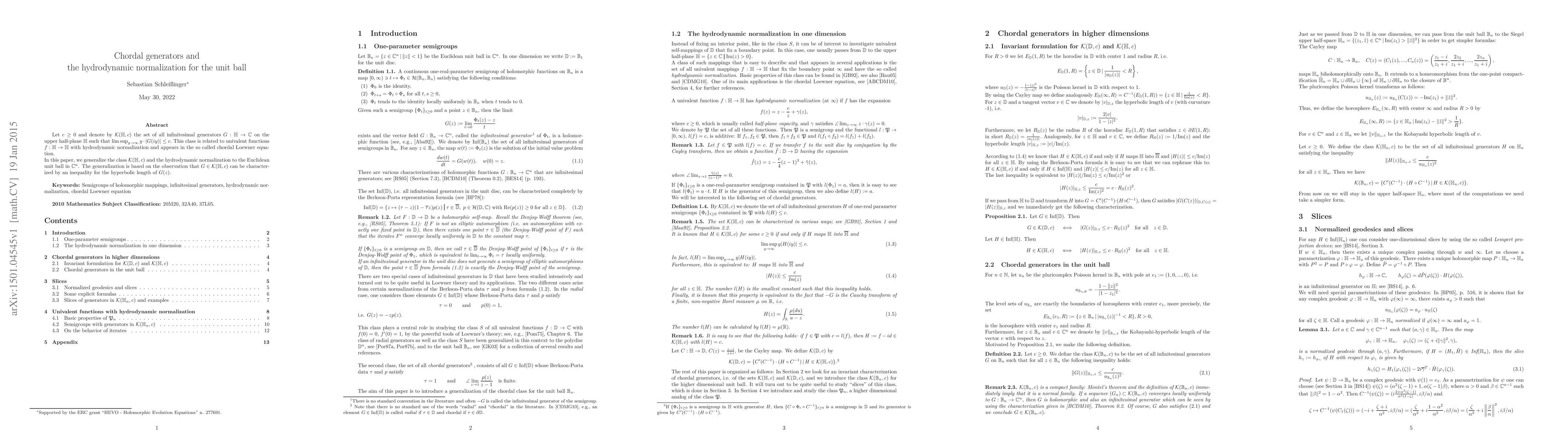 The paper generalizes the class $\mathcal{K}(\mathbb{H},c)$ and the hydrodynamic normalization to the Euclidean unit ball in $\mathbb{C}^n$ by characterizing $G \in \mathcal{K}(\mathbb{H},c)$ using an inequality for the hyperbolic length of $G(z)$ and extending this concept to higher dimensions.