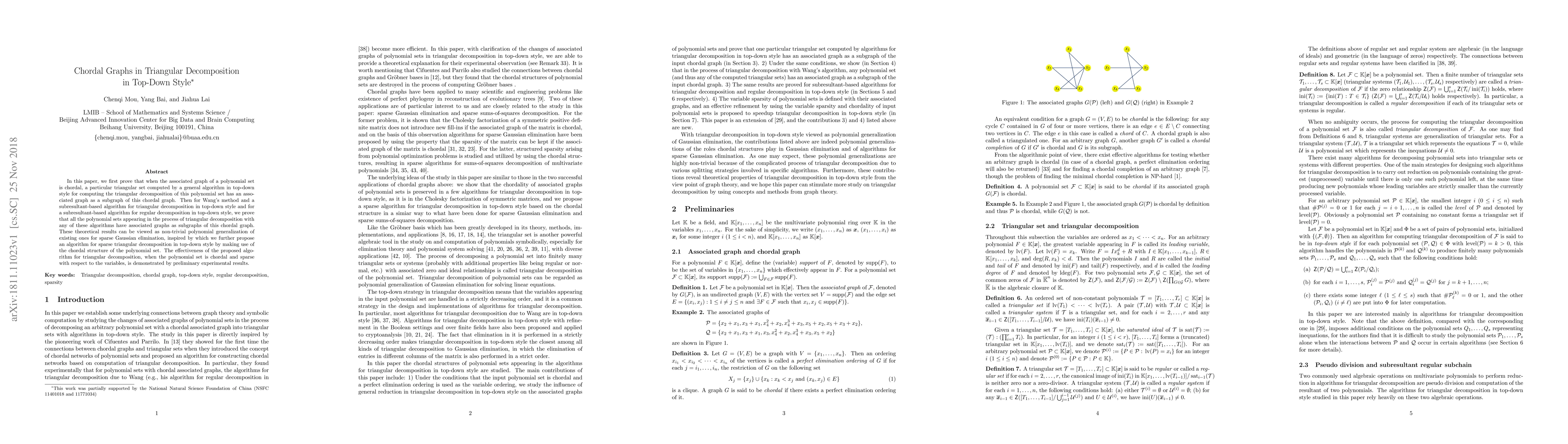 This paper proves that in top-down triangular decomposition, if the associated graph of a polynomial set is chordal, then the computed triangular sets retain this chordal structure. It also proposes an algorithm leveraging this chordal structure for efficient sparse triangular decomposition, demonstrating its effectiveness through preliminary experiments.
