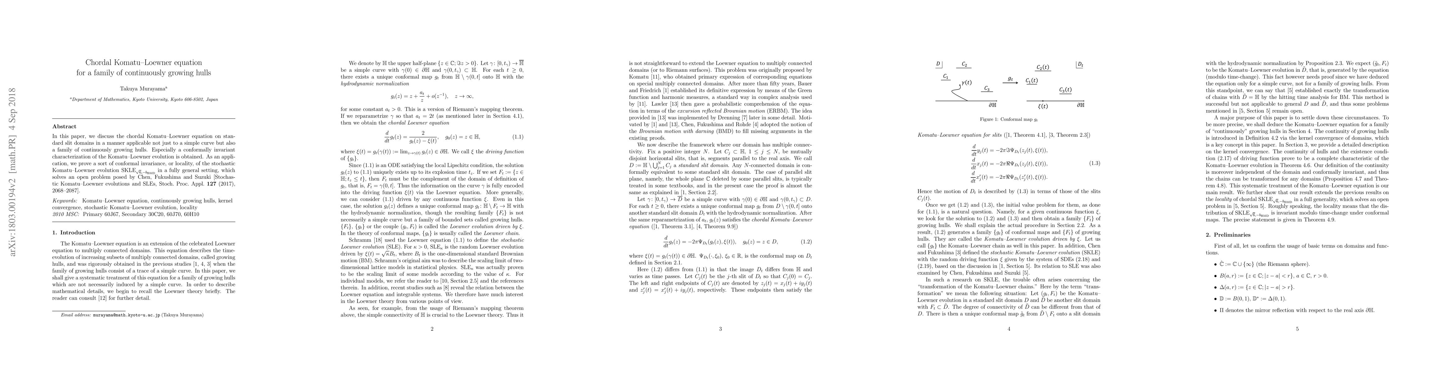 This paper introduces a chordal Komatu-Loewner equation for continuously growing hulls, resolving an open problem and providing a conformally invariant characterization of the evolution. The result implies local conformal invariance of the stochastic Komatu-Loewner evolution in a general setting.