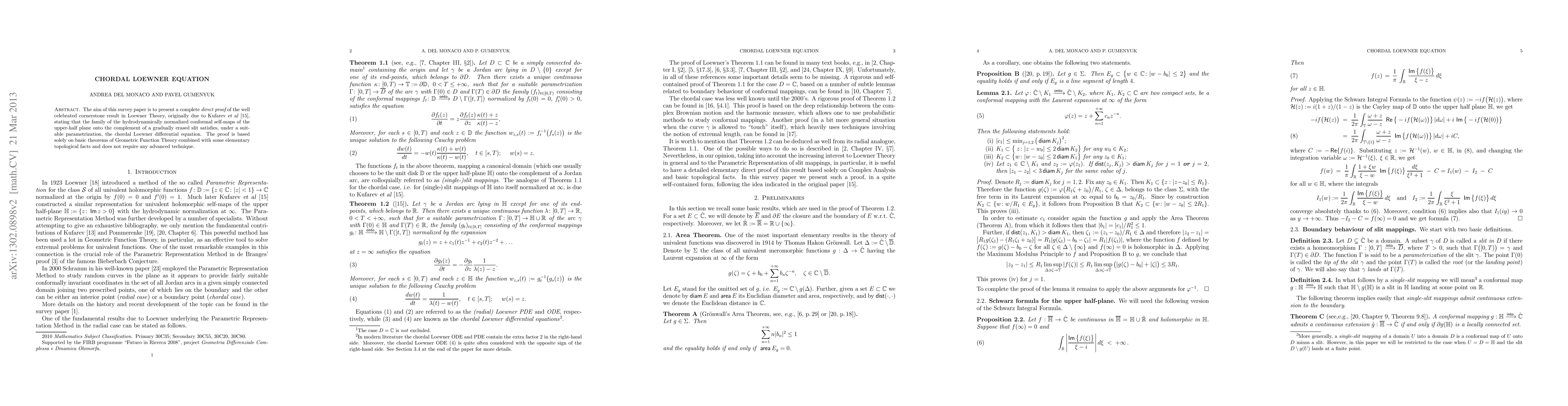 This survey paper provides a straightforward proof of the chordal Loewner equation, demonstrating that hydrodynamically normalized conformal self-maps of the upper-half plane onto the complement of a gradually erased slit satisfy this equation under a suitable parametrization, using only basic theorems of Geometric Function Theory and elementary topological facts.