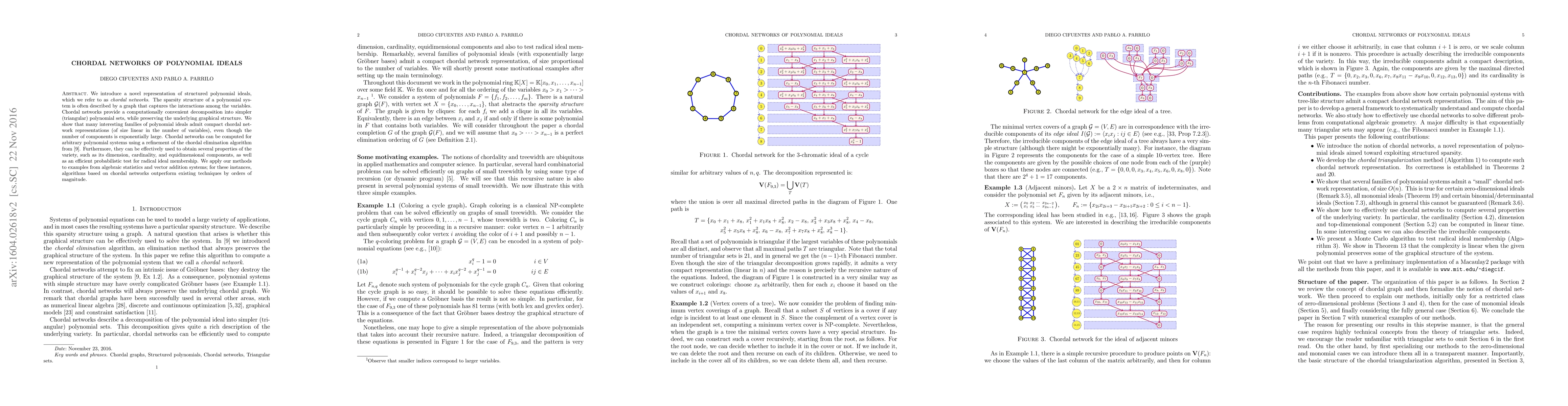 This paper introduces chordal networks as a novel representation of structured polynomial ideals, providing a computationally convenient way to analyze them and improving the performance of algorithms for certain applications.