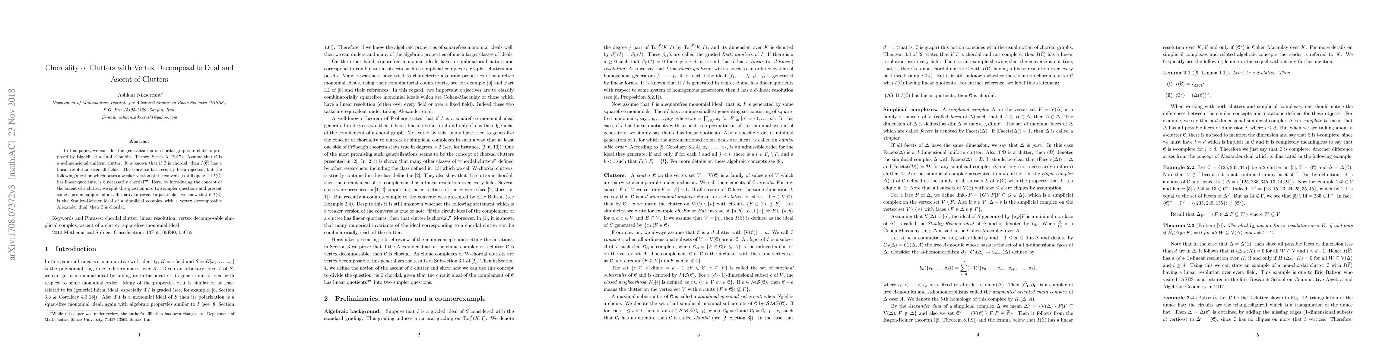 This paper explores the generalization of chordal graphs to clutters and investigates whether a clutter is chordal if its associated Stanley-Reisner ideal has a linear resolution. It introduces the concept of the ascent of a clutter to simplify the problem and provides evidence supporting the affirmative answer when the dual simplicial complex has a vertex decomposable Alexander dual.