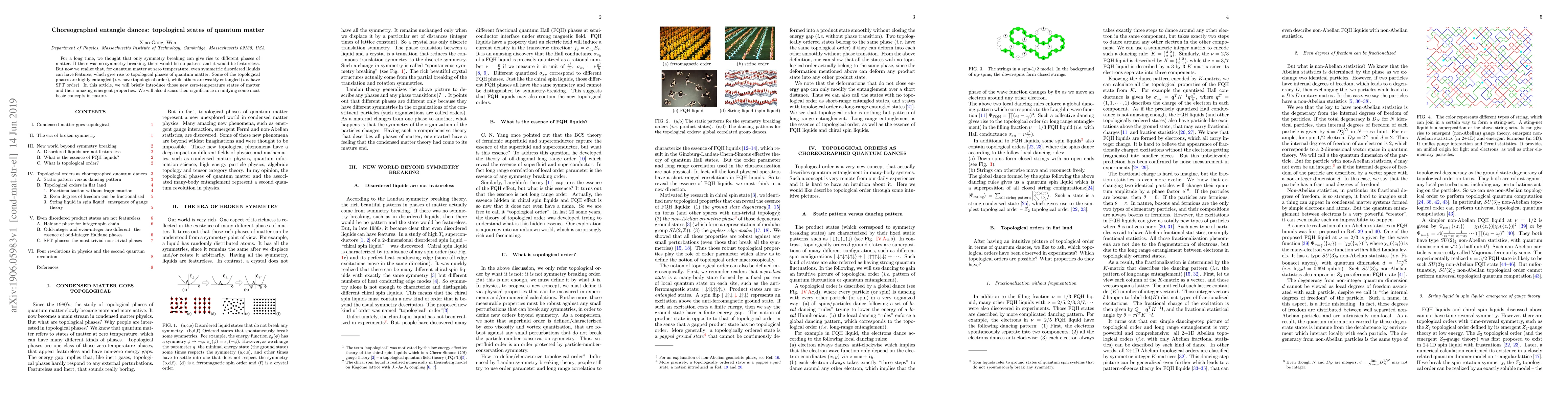 For a long time, we thought that only symmetry breaking can give rise to different phases of matter. If there was no symmetry breaking, there would be no pattern and it would be featureless. But now we realize that, for quantum matter at zero temperature, even symmetric disordered liquids can have features, which give rise to topological phases of quantum matter. Some of the topological phases are highly entangled (i.e. have topological order), while others are weakly entangled (i.e. have SPT order). In this article, we will briefly introduce those new zero-temperature states of matter and their amazing emergent properties. We will also discuss their significance in unifying some most basic concepts in nature.