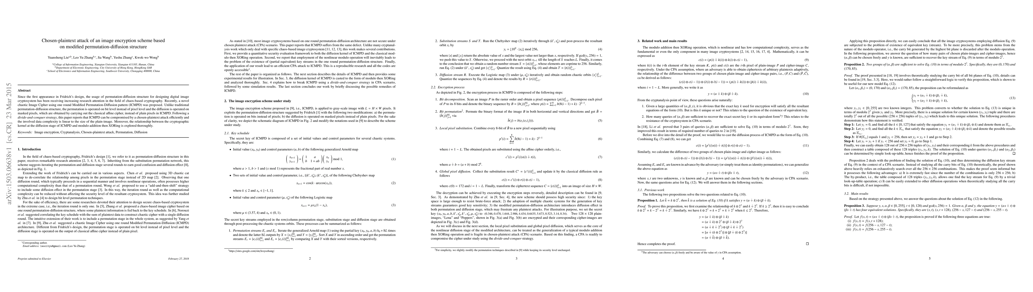 This paper demonstrates a chosen-plaintext attack on a modified permutation-diffusion structure-based image encryption scheme, revealing its vulnerability with linear data complexity. The attack exploits the cryptographic kernel at the diffusion stage, linking it to modulo addition and XOR operations.
