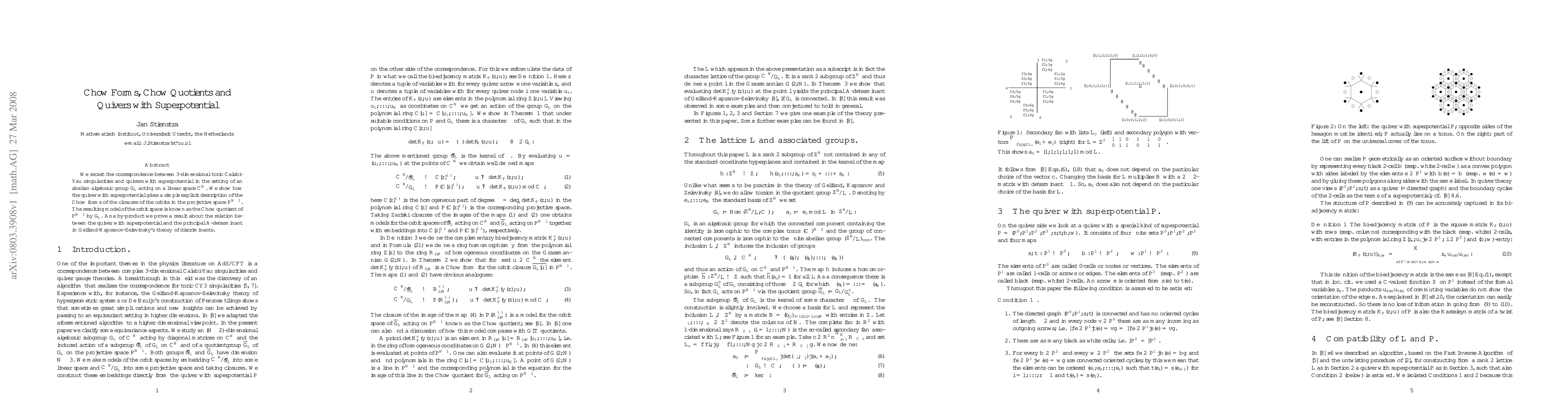 We consider 3-dimensional toric Calabi-Yau singularities which arise as cones over the Chow quotient for a torus acting on projective space. We show that the Chow forms of the closures of the codimension 2 orbits can very easily be written down from the quiver with superpotential which corresponds with the given CY3 singularity under the correspondence between CY3 singularities and quivers with superpotential which is part of the AdS/CFT correspondence in physics. We also prove that this provides a new method for computing the principal A-determinant in the theory of Gelfand-Kapranov-Zelevinsky.
