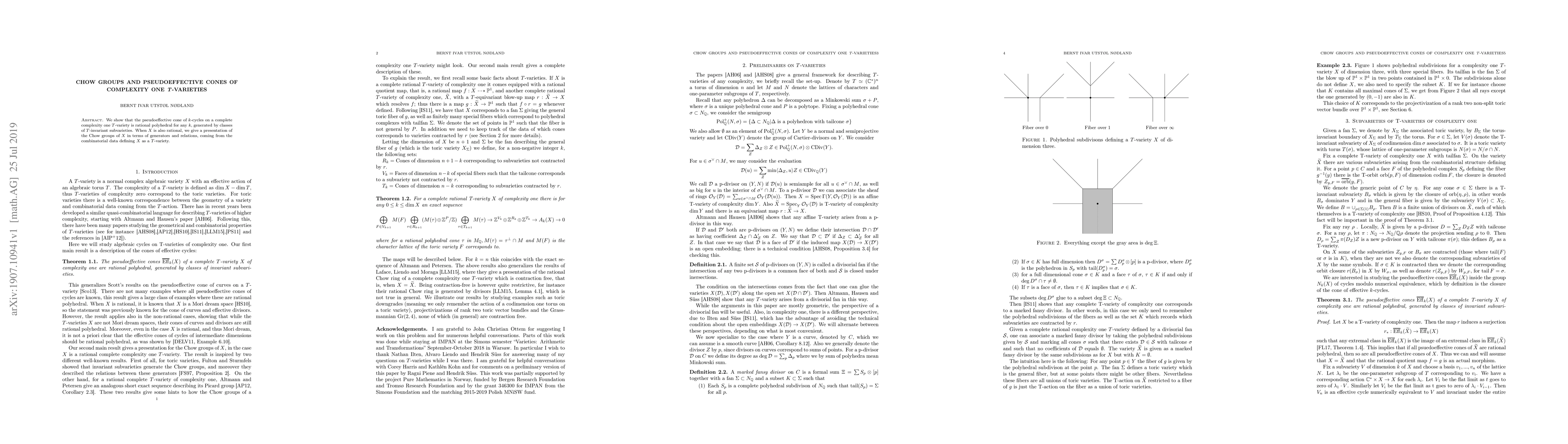 We show that the pseudoeffective cone of $k$-cycles on a complete complexity one $T$-variety is rational polyhedral for any $k$, generated by classes of $T$-invariant subvarieties. When $X$ is also rational, we give a presentation of the Chow groups of $X$ in terms of generators and relations, coming from the combinatorial data defining $X$ as a $T$-variety.